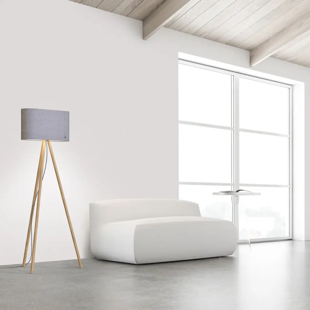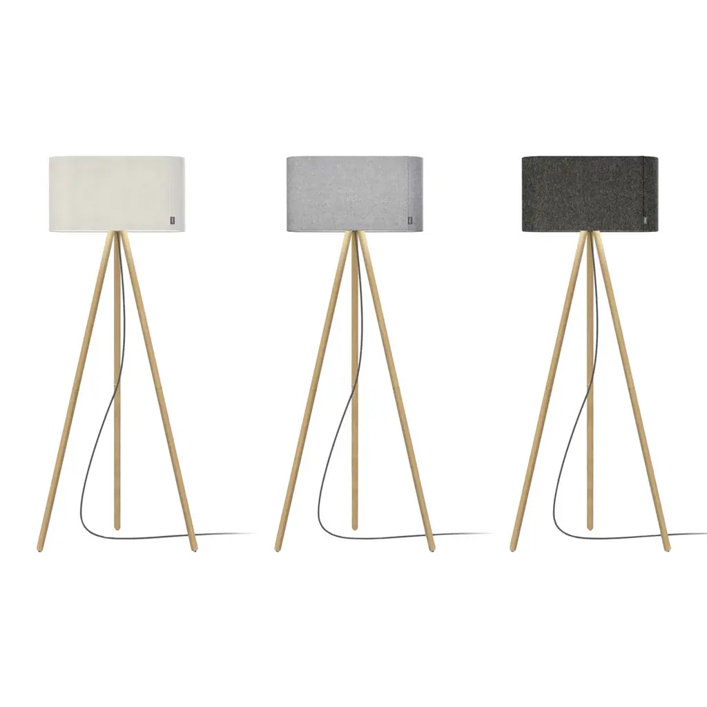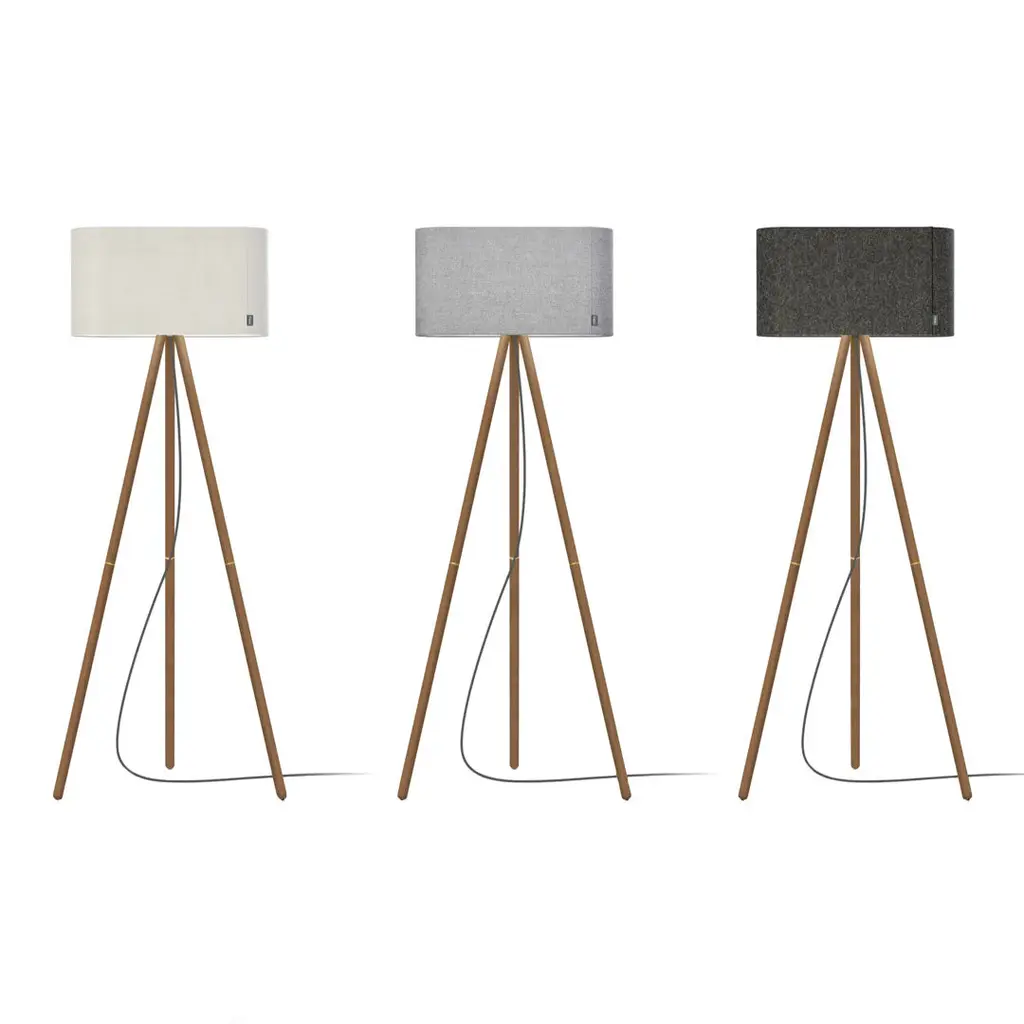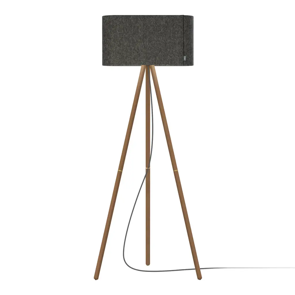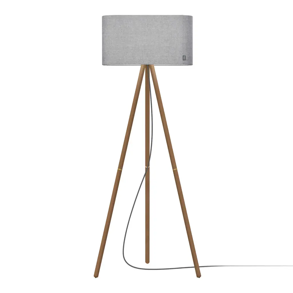 An elegant interplay of proportion and material, Belmont Floor's timeless design is perfectly at home in both modern and traditional settings. Its iconic raceway shade form is lined with premium felted wool or premium woven white fabric that is delicately balanced over a graceful tri-pod leg assembly hand-crafted from solid oak or walnut. Belmont Floor’s majestic frame stands at a 62.5" (159cm) height providing warm and bright illumination that's fully dimmable to set the perfect ambiance in any living area. Perfectly suited for residential and hospitality environments alike, Belmont Floor is available in three luxurious shade colors with rich wooden finishes.