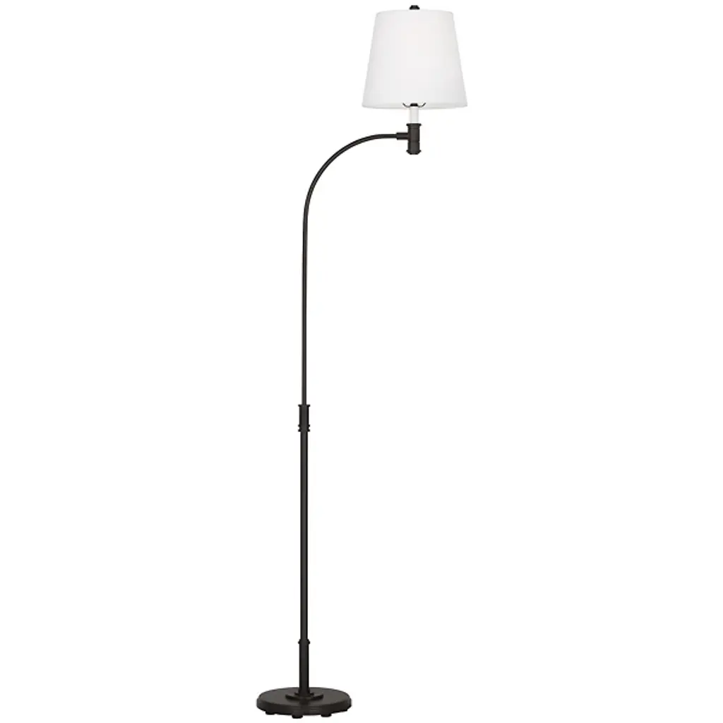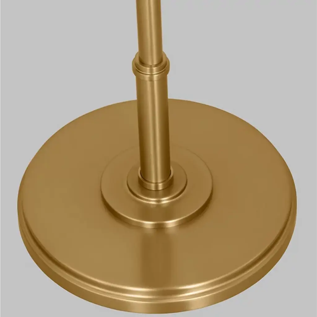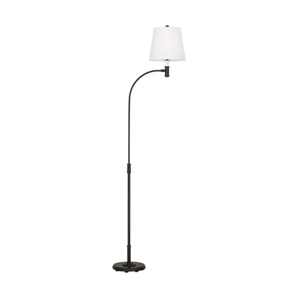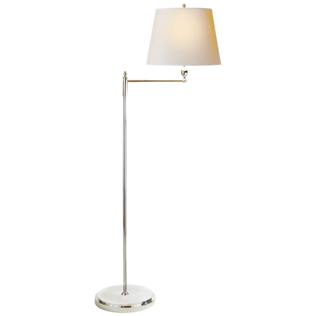 The Belmont Floor Lamp by Visual Comfort Studio is a modern update to an archived pharmacy and accent lighting designed by Chapman & Myers. This decorative piece features an ultra-slender steel form that has been meticulously worked into an arch. A baseplate keeps this light fixture properly balanced as LED light fills your living space.