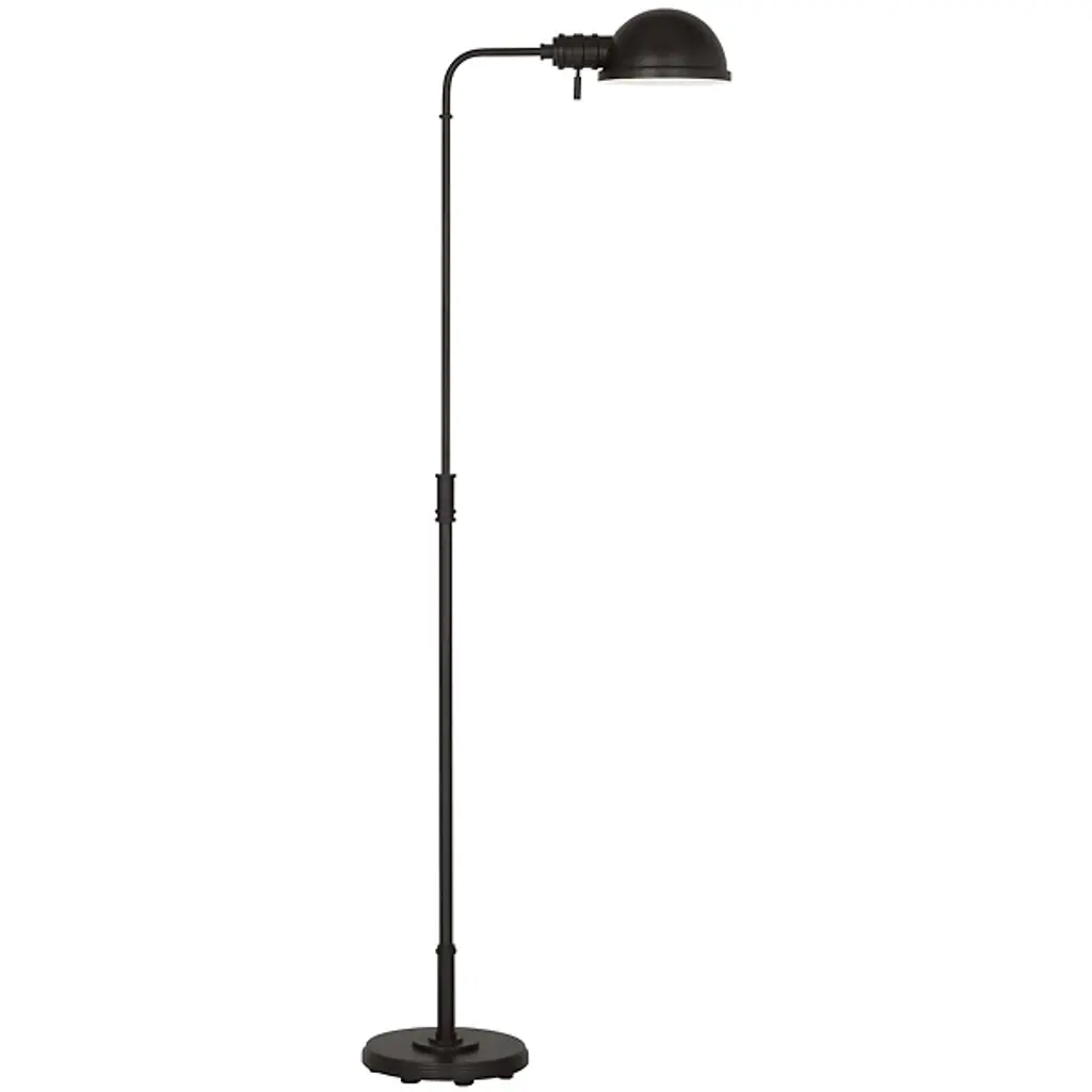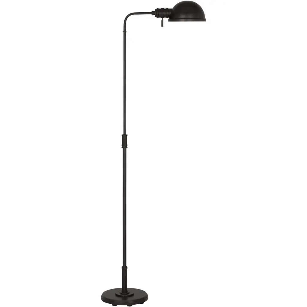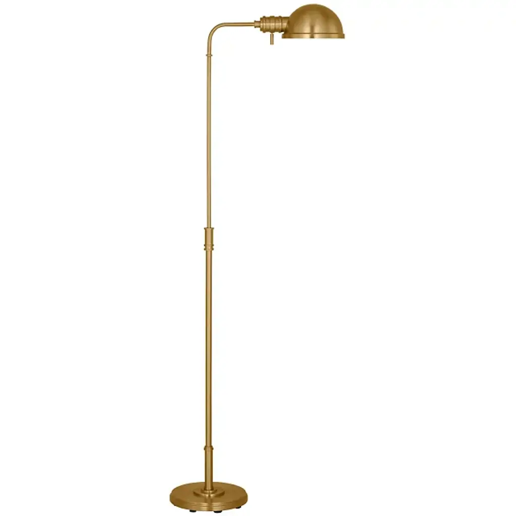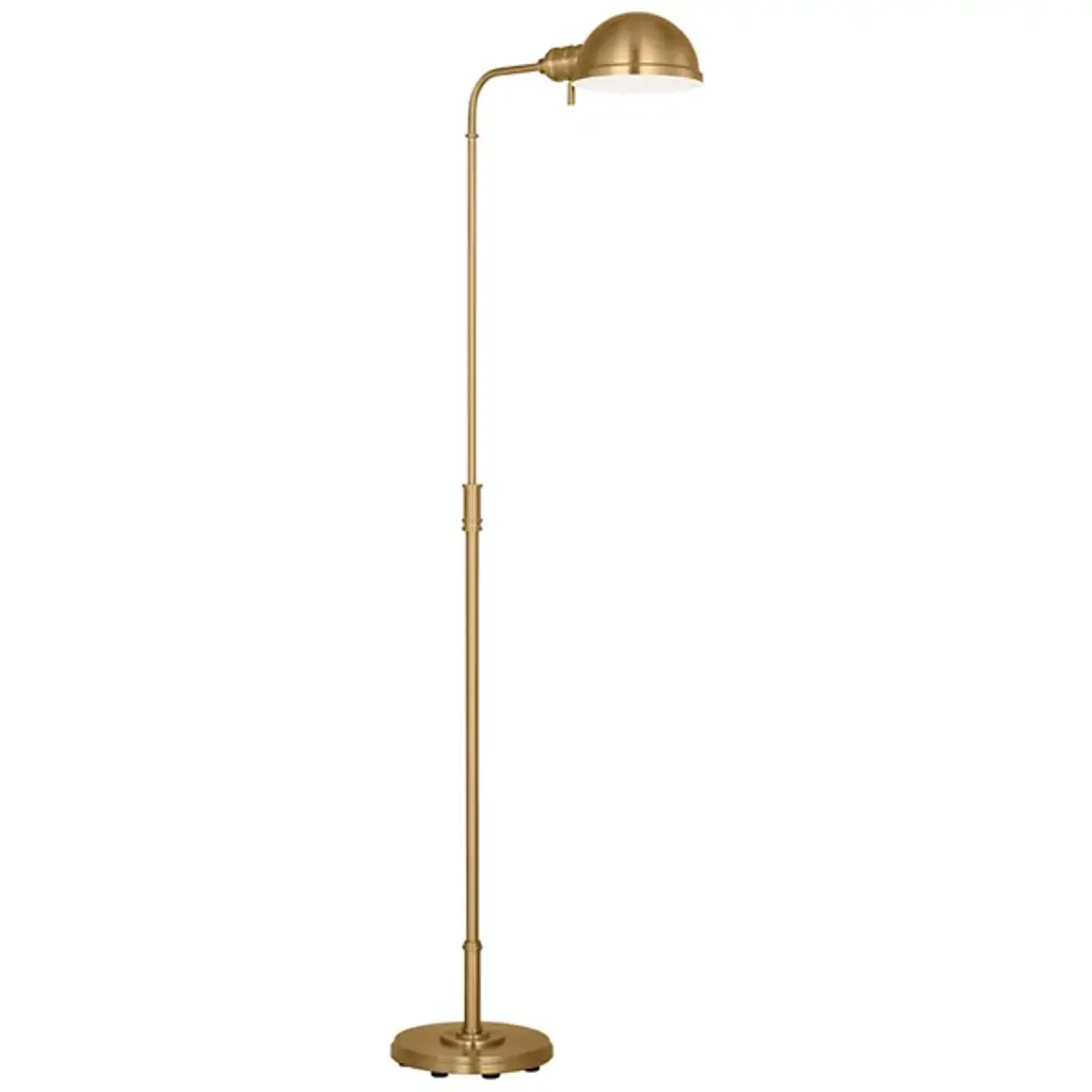The Belmont Task Floor Lamp by Visual Comfort Studio is a modern update to an archived pharmacy and accent lighting designed by Chapman & Myers. This decorative piece features an ultra-slender steel form that has been meticulously worked into an arch. A baseplate keeps this light fixture properly balanced as LED light fills your living space.