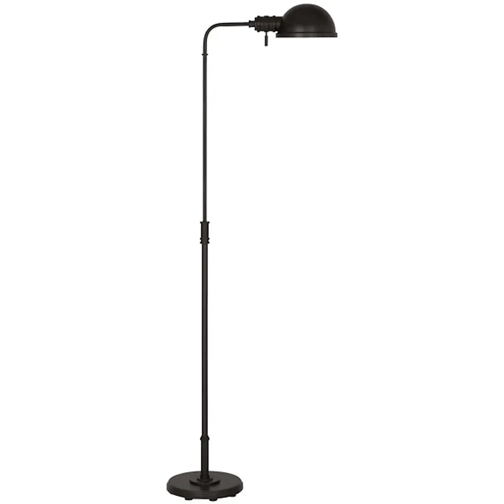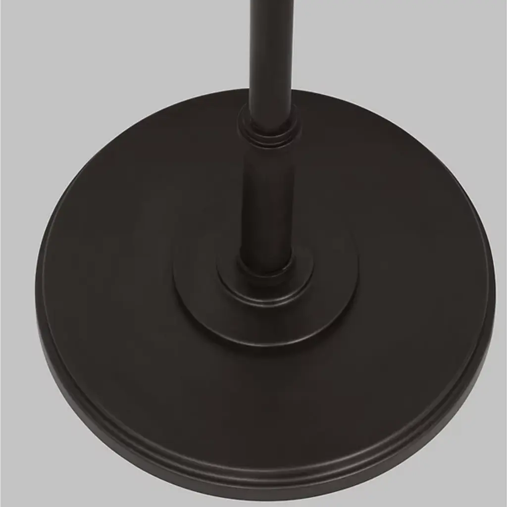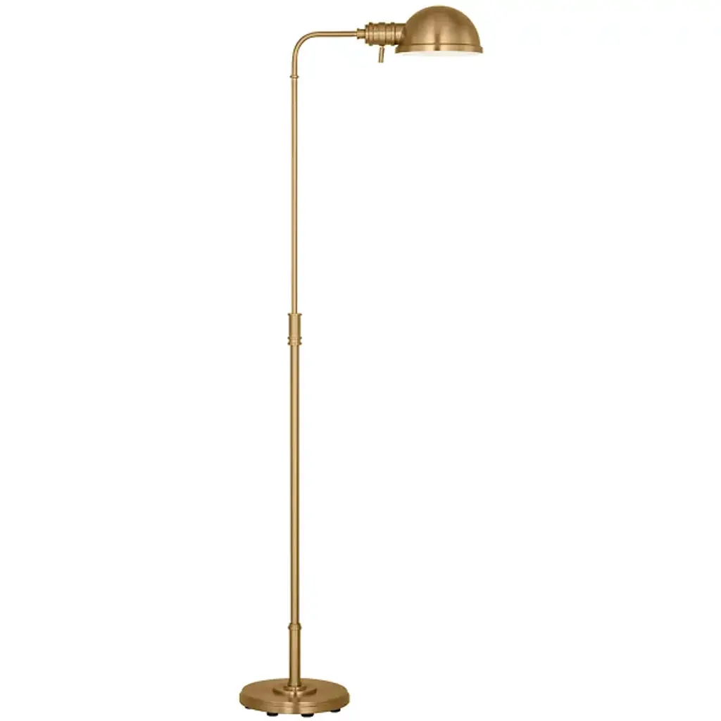 The Belmont Task Floor Lamp by Visual Comfort Studio is a modern update to an archived pharmacy and accent lighting designed by Chapman & Myers. This decorative piece features an ultra-slender steel form that has been meticulously worked into an arch. A baseplate keeps this light fixture properly balanced as LED light fills your living space.