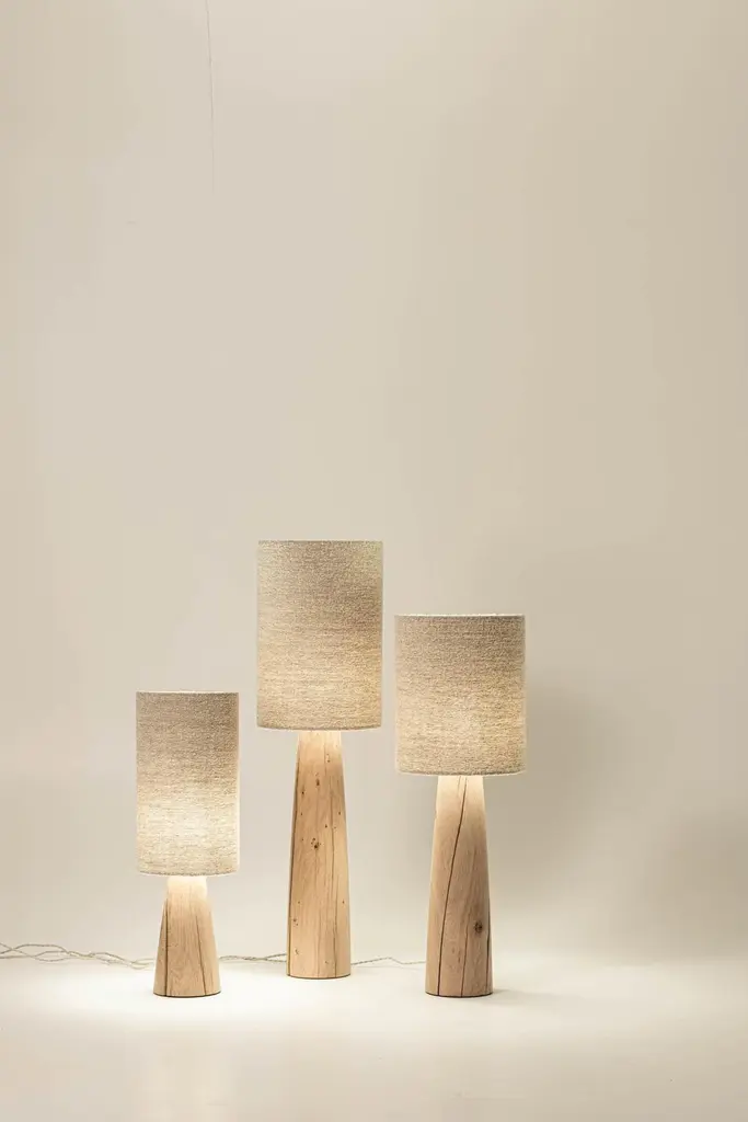 Bengra FL4M lamp by Jeroen De RuddereDimensions: D 33 x H 100 cmCord Lenght: 175 cmDimmable: YesMaterials: Oak Brutal nature and textile.All pieces are CE certified.Each lamp is handmade so the measurements may differ minimally.