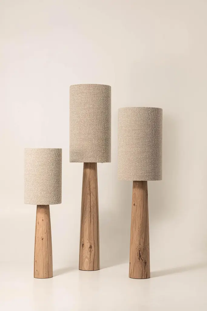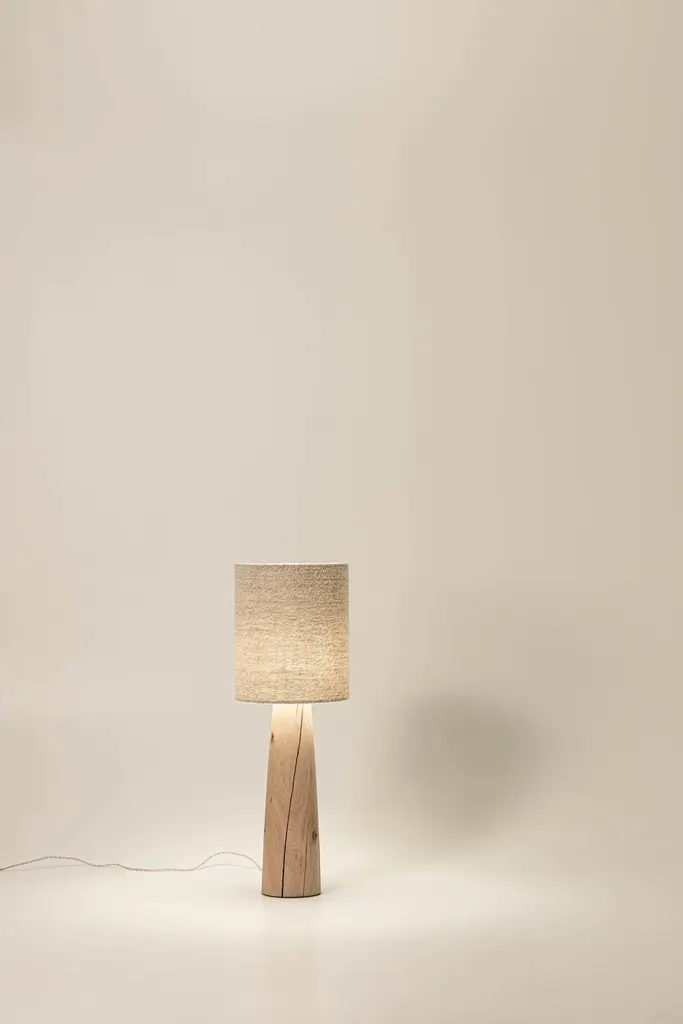 Bengra FL4M lamp by Jeroen De RuddereDimensions: D 33 x H 100 cmCord Lenght: 175 cmDimmable: YesMaterials: Oak Brutal nature and textile.All pieces are CE certified.Each lamp is handmade so the measurements may differ minimally.