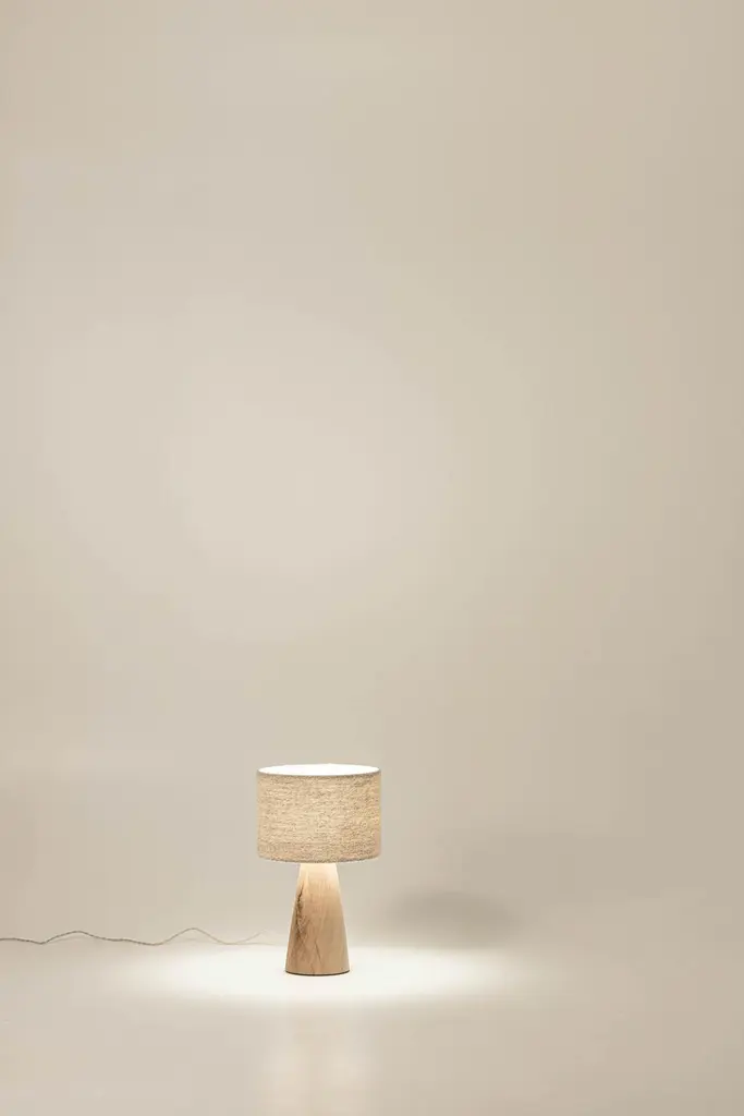 Bengra FL4S-33 lamp by Jeroen De RuddereDimensions: D 33 x H 57 cmCord Lenght: 175 cmDimmable: YesMaterials: Oak Brutal nature and textile.All pieces are CE certified.Each lamp is handmade so the measurements may differ minimally.