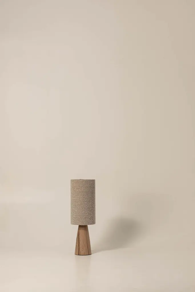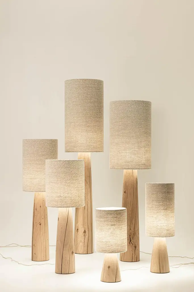 Bengra FL4S lamp by Jeroen De Ruddere.Dimensions: D 25 x H 80 cmCord Lenght: 175 cmDimmable: YesMaterials: Oak Brutal nature and textile.All pieces are CE certified.Each lamp is handmade so the measurements may differ minimally.