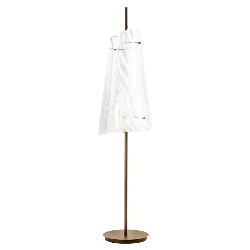 Bent two smoky grey champagner floor lamp by PulpoDimensions: D34 x H164 cm.Materials: steel powder coated, 2 shades, casted glass, textile.Also available in different finishes: smoky grey black, transparent black, smoky grey champagner, transparent champagner.Presenting the beauty of glass through simple abstract forms, bent is a sculptural piece with a unique presence. A simple black steel frame allows its centrepiece to shine brightest; one or two curved sections of casted and coloured glass. The simple pattern on the glass surfaces extends the light source to present a wave of form and light – illuminating even the darkestinteriors.Each piece is created from casted and coloured glass sheet, slumped into form. Bubbles, streaks and other variations in size and colour are part of production processes, and not defects in the design or production. The stand and base are produced from powder coated steel.All our lamps can be wired according to each country. If sold to the USA it will be wired for the USA for instance.Pulpo is a design editor for high-end products in the home sector.Design is our passion. Art is our engine. We are fascinated by the craft of the ceramic and glassblowing workshops and are guided by the rough aesthetics of these unique pieces.Pulpo’s philosophy goes back to the idea of ??the “carte blanche”. Our designers and artists develop their designs freely and experimentally. A variety of materials and a weakness for structures are our strengths.The headquarters of pulpo is in Weil am Rhein, near the Swiss border. Consisting of the creative and sales department, warehouse and logistics, this is the think tank for our artists and designers. pulpo’s dealer network extends far beyond Weil am Rhein – from Iceland and Dubai to Australia.Pulpo is movement – is possibility – is passion.In 2006, pulpo was founded by Ursula and Patrick L’hoste as a design brand at the interface between shape and material. pulpo’s conception is to edit lighting, furniture and accessoires on editor’s choice. The company’s focus is to conduct up-and-coming designers and selected manufacturers, using the nature of material’s to form the score. Materials such as ceramics, stone and especially glass, which is pulpo’s primary focus since 2013.