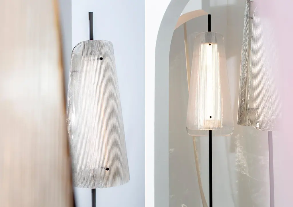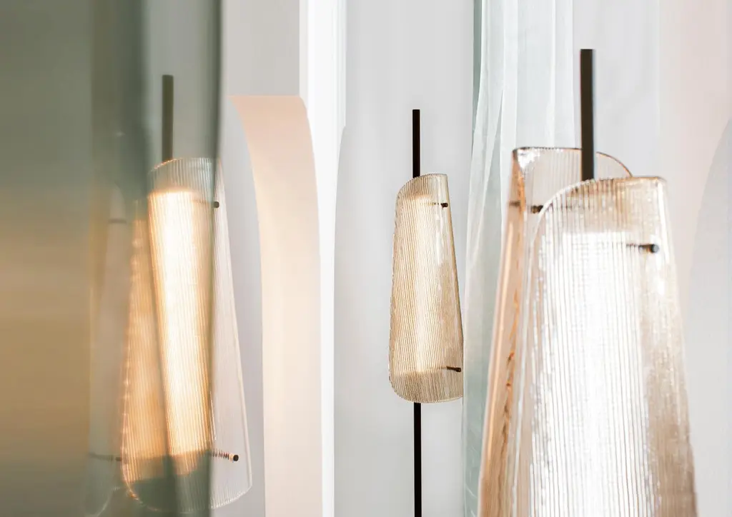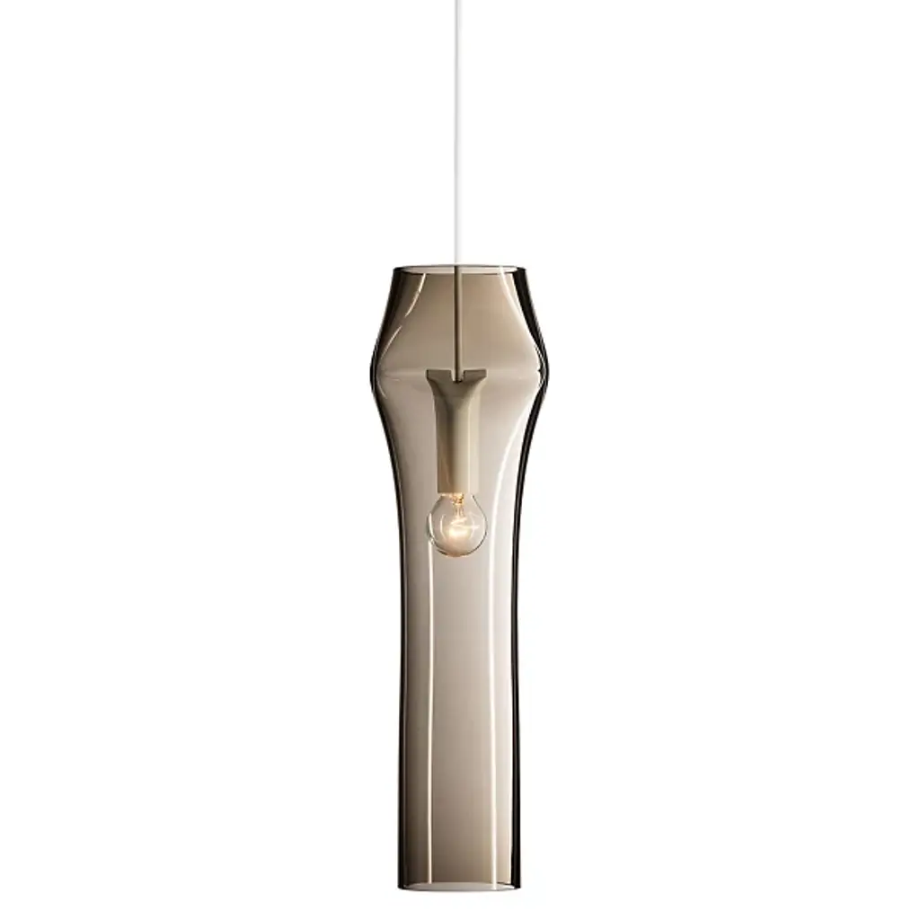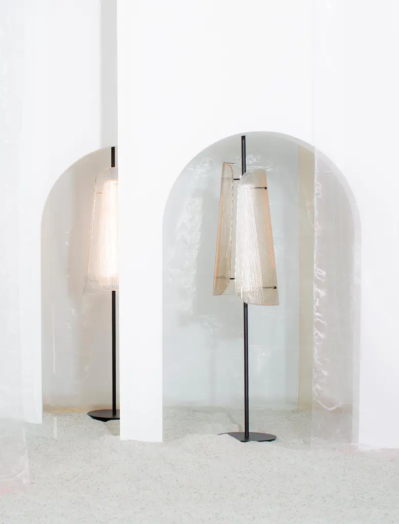 Bent Two Transparent Champagner floor lamp by Pulpo.Dimensions: D34 x H164 cmMaterials: steel powder coated, 2 shades, casted glass, textileAlso available in different finishes: smoky grey black, transparent black, smoky grey champagner, transparent champagner.Presenting the beauty of glass through simple abstract forms, bent is a sculptural piece with a unique presence. A simple black steel frame allows its centrepiece to shine brightest; one or two curved sections of casted and coloured glass. The simple pattern on the glass surfaces extends the light source to present a wave of form and light – illuminating even the darkestinteriors.Each piece is created from casted and coloured glass sheet, slumped into form. Bubbles, streaks and other variations in size and colour are part of production processes, and not defects in the design or production. The stand and base are produced from powder coated steel.All our lamps can be wired according to each country. If sold to the USA it will be wired for the USA for instance.Pulpo is a design editor for high-end products in the home sector.Design is our passion. Art is our engine. We are fascinated by the craft of the ceramic and glassblowing workshops and are guided by the rough aesthetics of these unique pieces.Pulpo’s philosophy goes back to the idea of ??the “carte blanche”. Our designers and artists develop their designs freely and experimentally. A variety of materials and a weakness for structures are our strengths.The headquarters of pulpo is in Weil am Rhein, near the Swiss border. Consisting of the creative and sales department, warehouse and logistics, this is the think tank for our artists and designers. pulpo’s dealer network extends far beyond Weil am Rhein – from Iceland and Dubai to Australia.Pulpo is movement – is possibility – is passion.In 2006, pulpo was founded by Ursula and Patrick L’hoste as a design brand at the interface between shape and material. pulpo’s conception is to edit lighting, furniture and accessoires on editor’s choice. The company’s focus is to conduct up-and-coming designers and selected manufacturers, using the nature of material’s to form the score. Materials such as ceramics, stone and especially glass, which is pulpo’s primary focus since 2013.