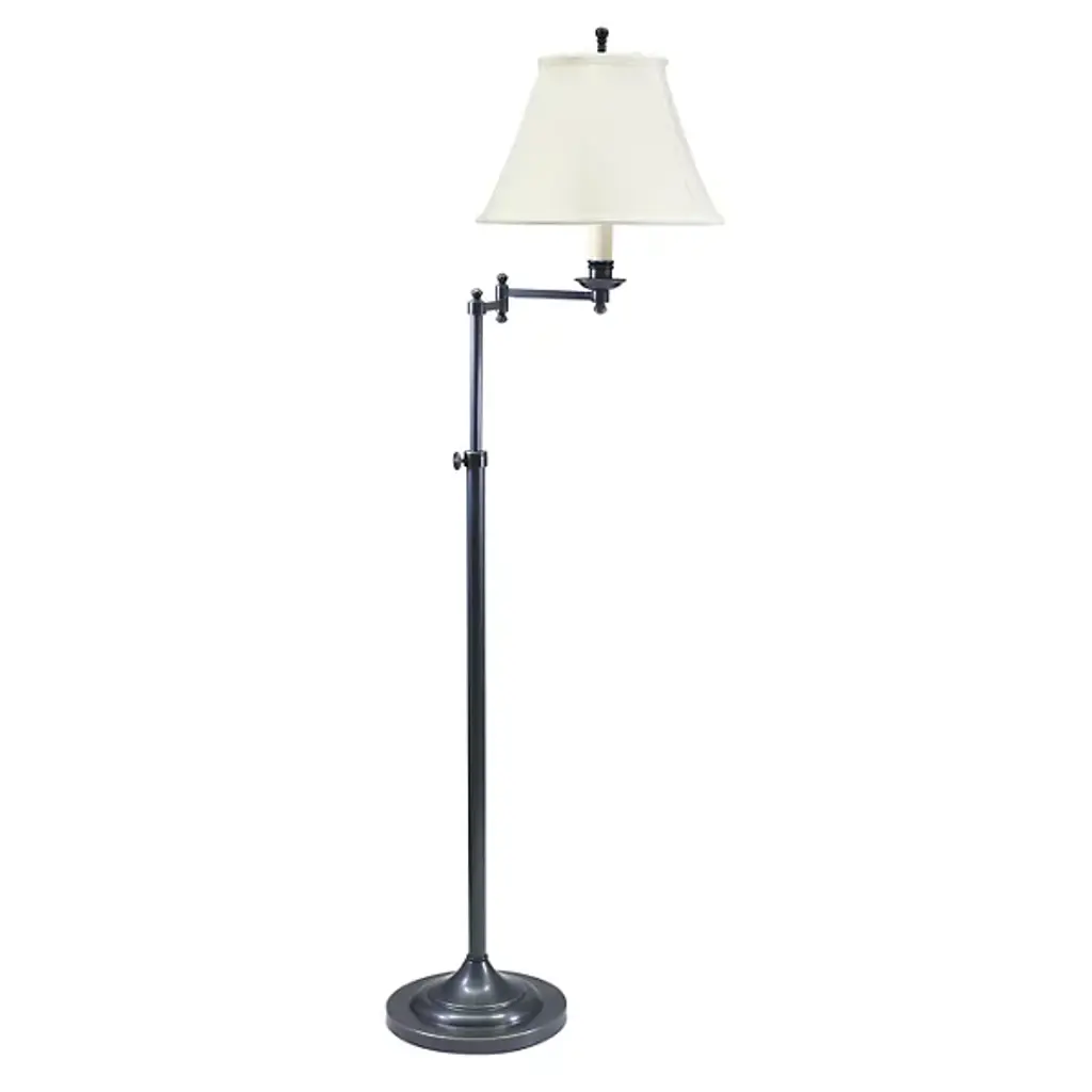 Enlighten your home with the rays of hope and positivity by the inclusion of this amazing floor lamp. It features a metal constructed tubular body with an adjustable height mechanism, incorporating a fabric shade and a 3 way switch for optimal light intensity control. It is supported by a pedestal base, providing stability and durability.