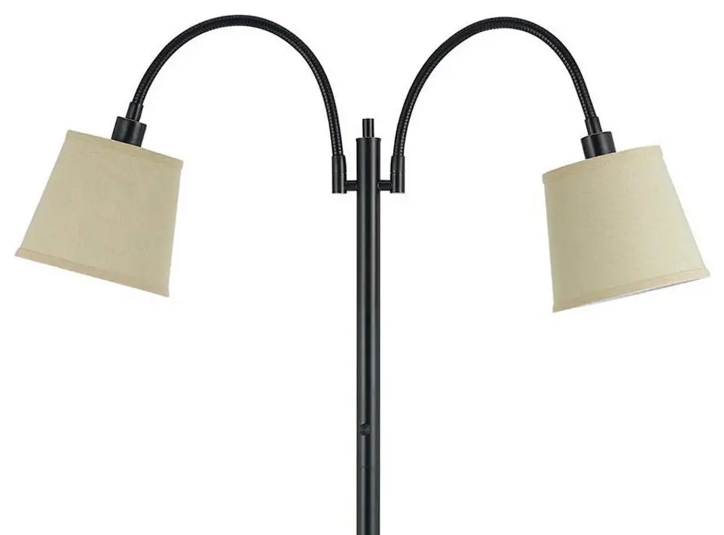 Enlighten your home with the rays of hope and positivity by the inclusion of this amazing floor lamp. It features a metal constructed tubular body with dual functional goosenecks, incorporating uno style shades and a 3 way switch for optimal light control. It is supported by a circular base, providing stability and durability.