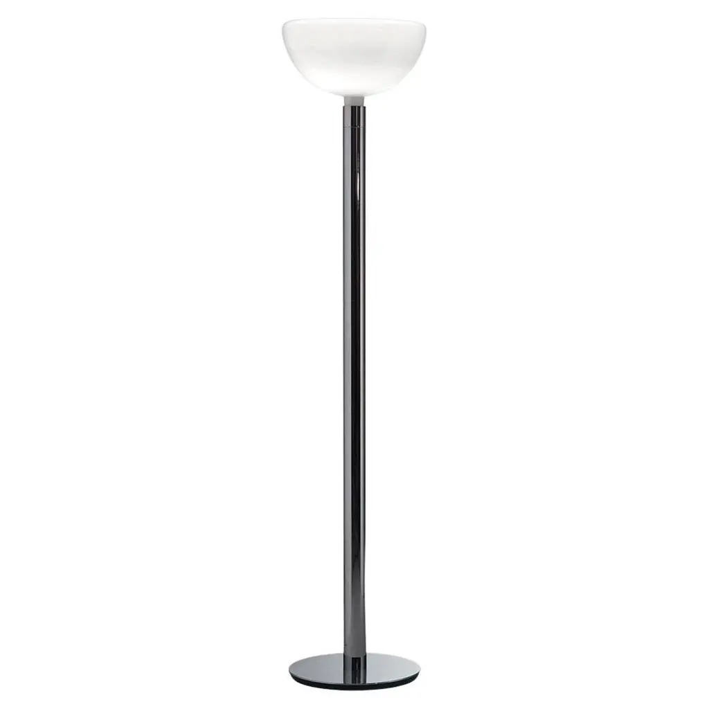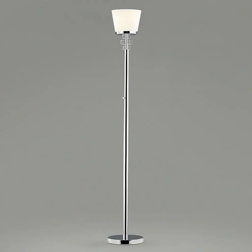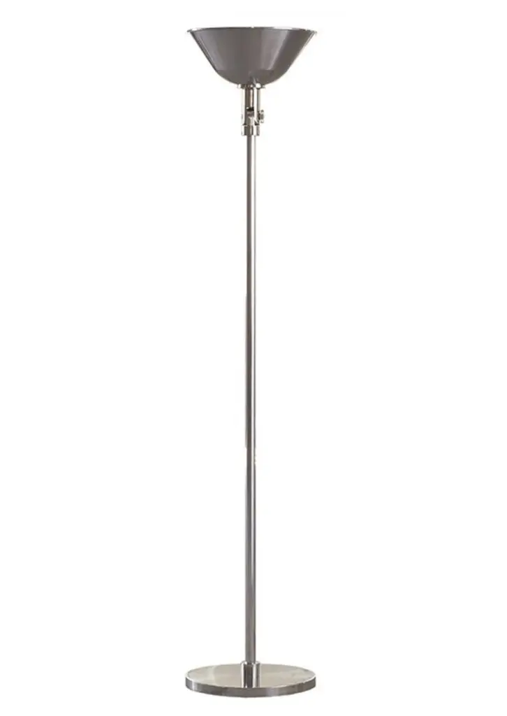 Illuminate your home with the rays of hope and positivity by the inclusion of this sophisticated Torchiere floor lamp. It features a metal constructed tubular body, incorporating a frosted glass shade and a 3 way switch for optimal light intensity control. It is supported by a circular base, providing stability and durability.