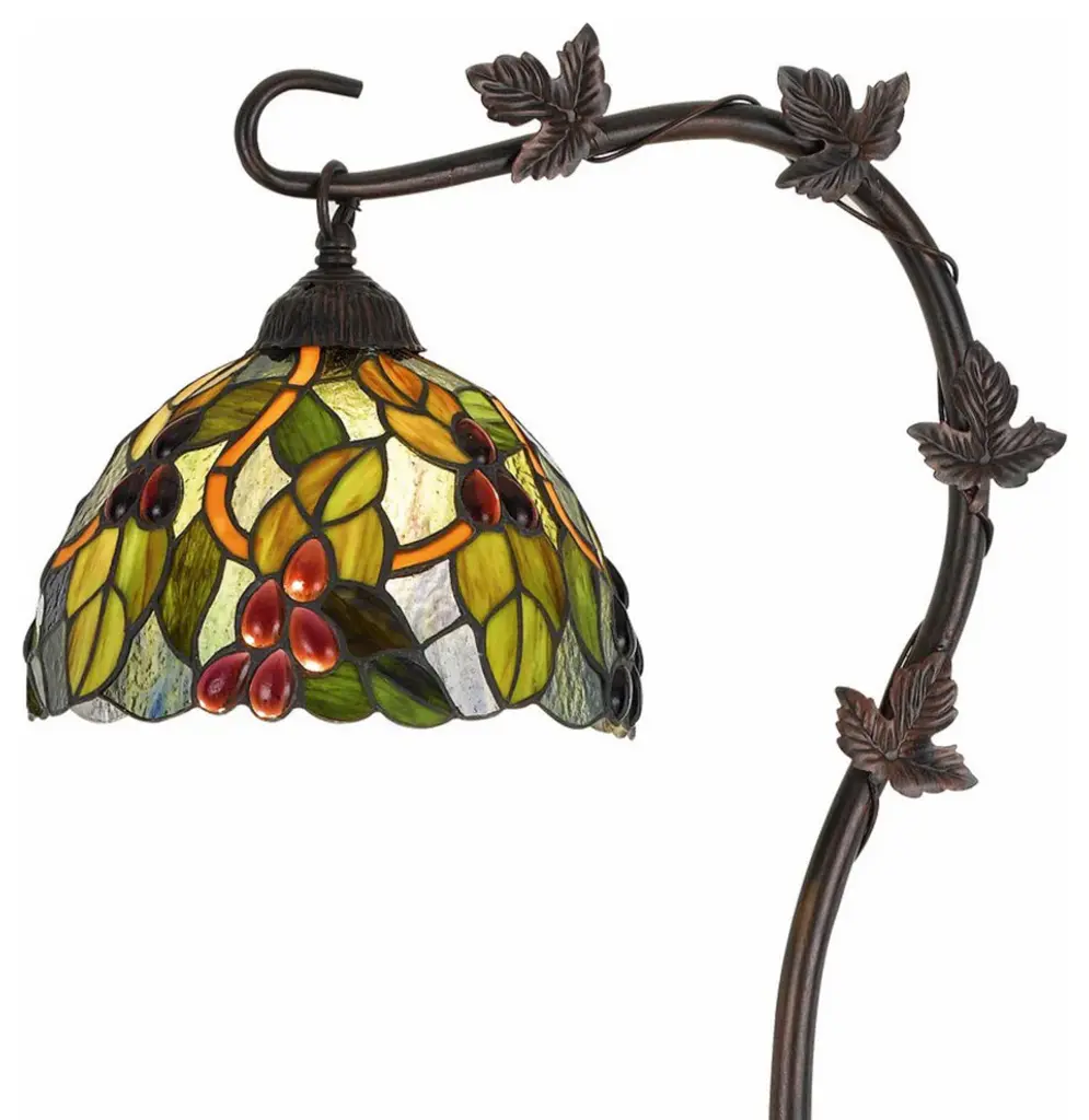 Benzara Bm224936 Metal Tiffany Floor Lamp With Leaf Accents, Multicolor