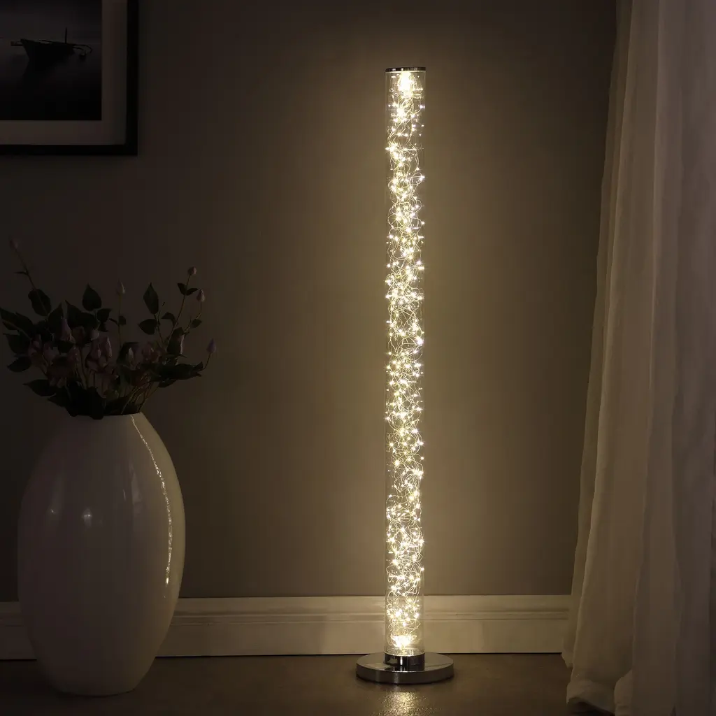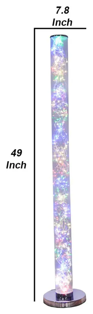A perfect amalgamation of style and modern design, this elegant Floor Lamp transforms your existing decor setting. Incorporating a wireless remote control, this floor lamp comes with a round chrome base and top cover. The clear acrylic tube incorporates 360 pieces of LED bulbs that illuminate your space with bright light.