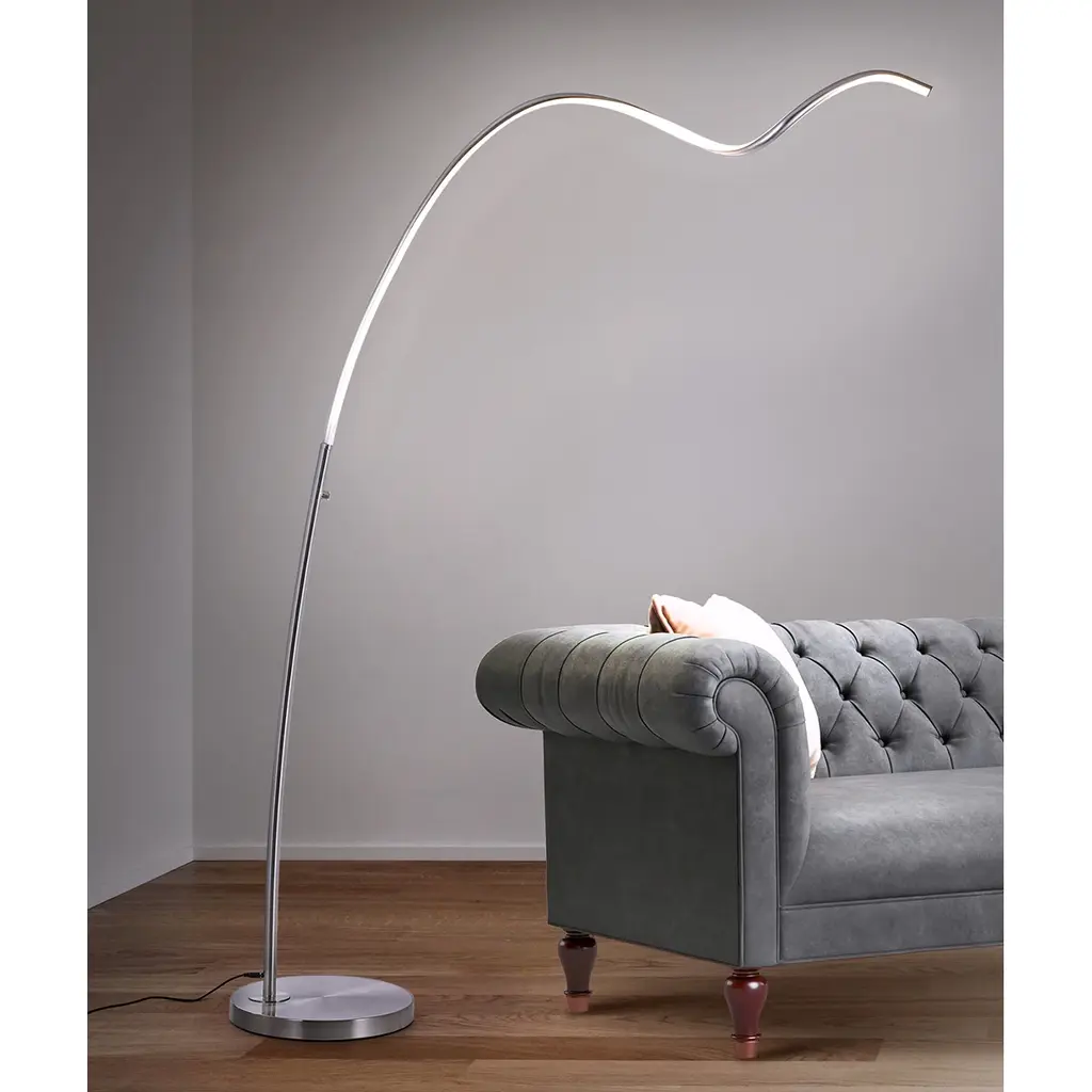Add minimalism to your home decor with this contemporary style Floor Lamp. Made from metal in a brushed silver finish, it incorporates a curved aluminum post over an oval pedestal base. It brings a warm touch to your existing furnishing with its efficient 18W LED system.
