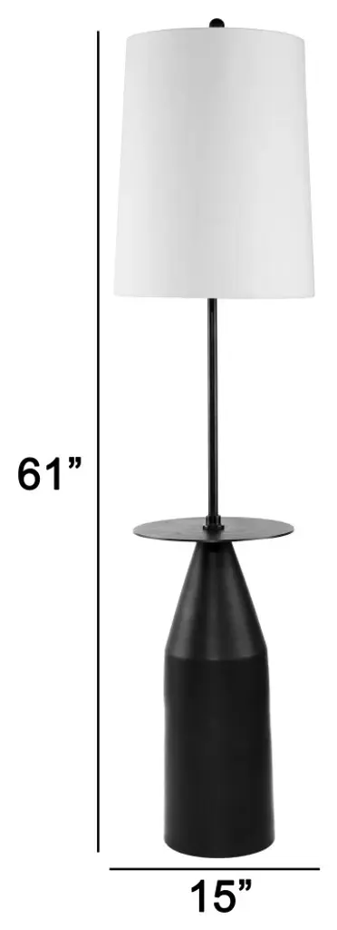 Infuse a bold cotemporary glamour into your living room, den, foyer, or home office, with this original modern floor lamp. It features a round drum shade that is wrapped in a simple, clean white fabric. Crafted from a lightweight yet sturdy iron frame in a striking black tone finish, the disc accent and gently tapered base impart a unique character to this exquisitely designed piece