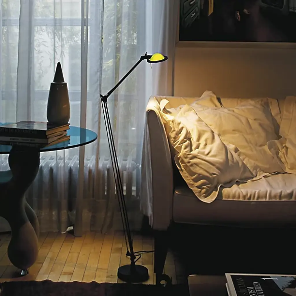 The Berenice Floor Lamp from Luceplan shines as a symbol of ingenuity and practicality. Engineered with precision and adaptability in mind, its seamlessly rotating jointed arms and nylon friction joint facilitate effortless adjustment of the light's direction, ensuring optimal brightness in any setting. An enduring design by Paolo Rizzatto in 1985, this lamp has garnered prestigious honors like the Compasso d'Oro Award for its outstanding and versatile design. Crafted from die-cast aluminum, Berenice exudes resilience and sturdiness, ascending from a disc base as an ideal choice for reading nooks and modern interiors seeking slender style and task-light-themed functionality.