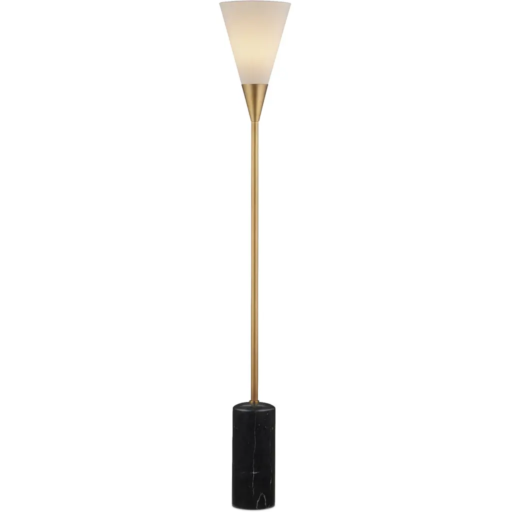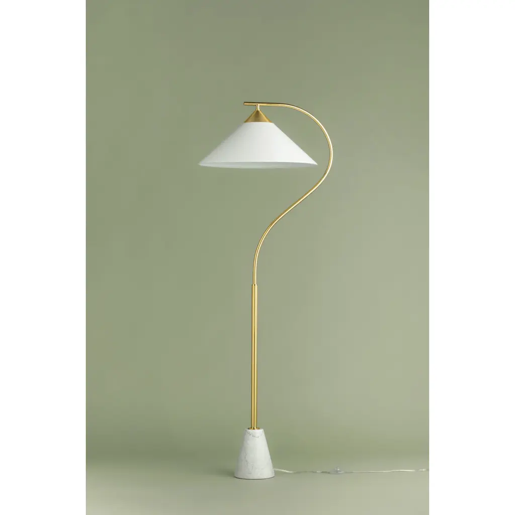 The gestural frame of the Bianca floor lamp brings instant drama to a space. Thoughtfully balanced, the striking honed Carrara marble base lends a sense of permanence, while a dangling linen shade adds lightness. Artful and timeless, Bianca seems to dance when lit.Due to the one-of-a-kind nature of the medium, exact colors and patterns may vary slightly from the image shown.
