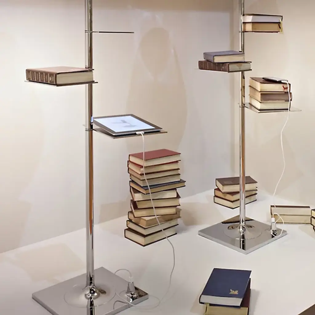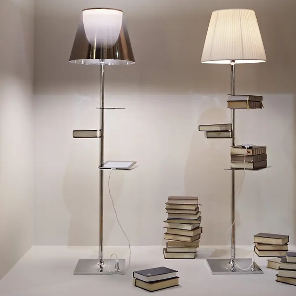 With the Flos Bibliotheque Nationale Floor Lamp, a book - and the light with which to read it - is always within reach. Indifferent to how you consume your reading material, rotating shelves offer stacking opportunities for "real" books while a USB outlet in the base can accommodate powering of the electronic variety. An integrated resistive dimmer is located on the power cord, ensuring you always have the perfect amount of light.