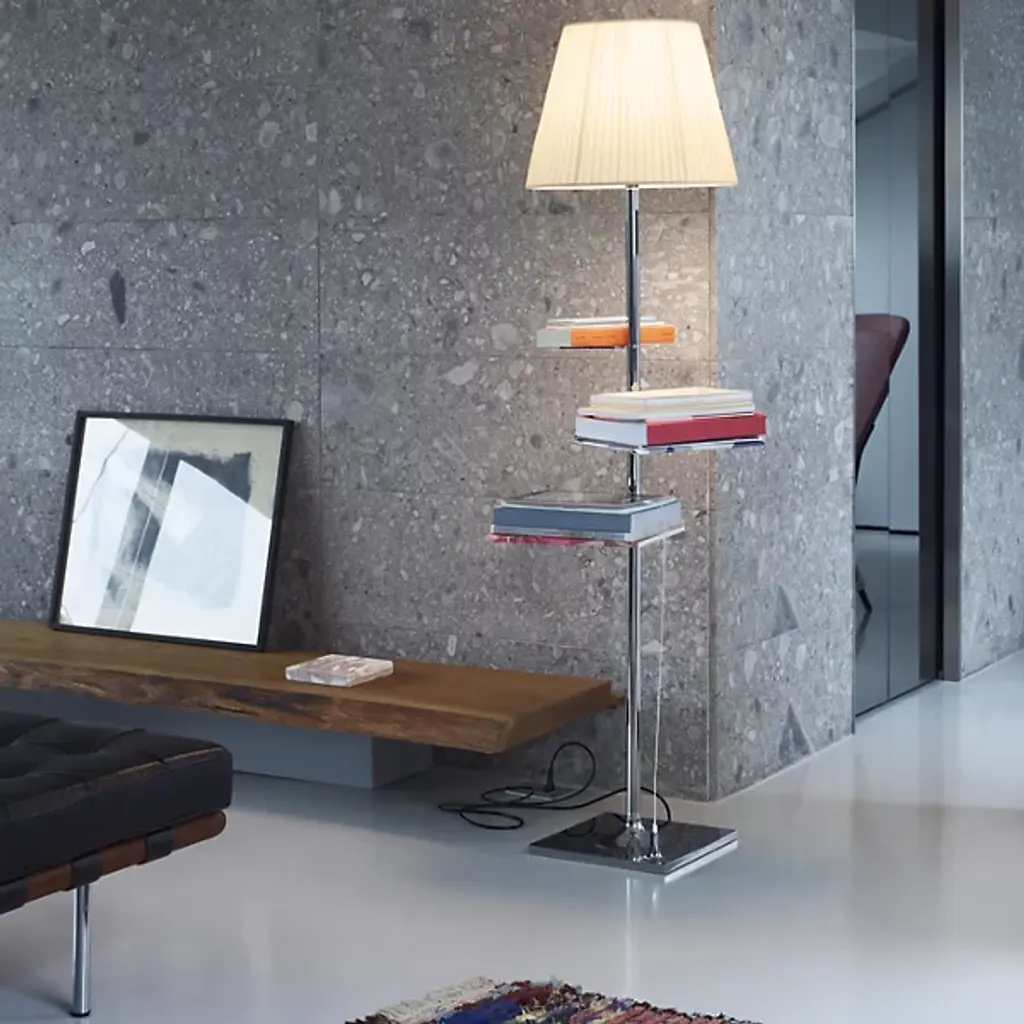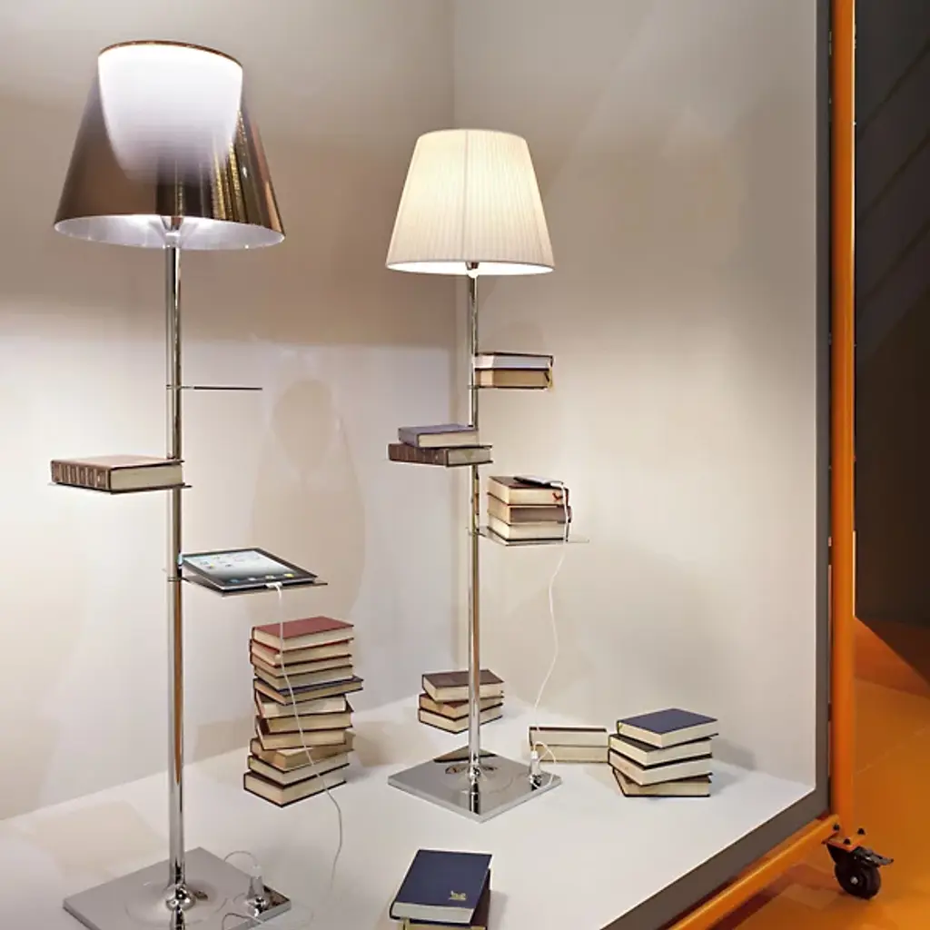 With the Flos Bibliotheque Nationale Floor Lamp, a book - and the light with which to read it - is always within reach. Indifferent to how you consume your reading material, rotating shelves offer stacking opportunities for "real" books while a USB outlet in the base can accommodate powering of the electronic variety. An integrated resistive dimmer is located on the power cord, ensuring you always have the perfect amount of light.