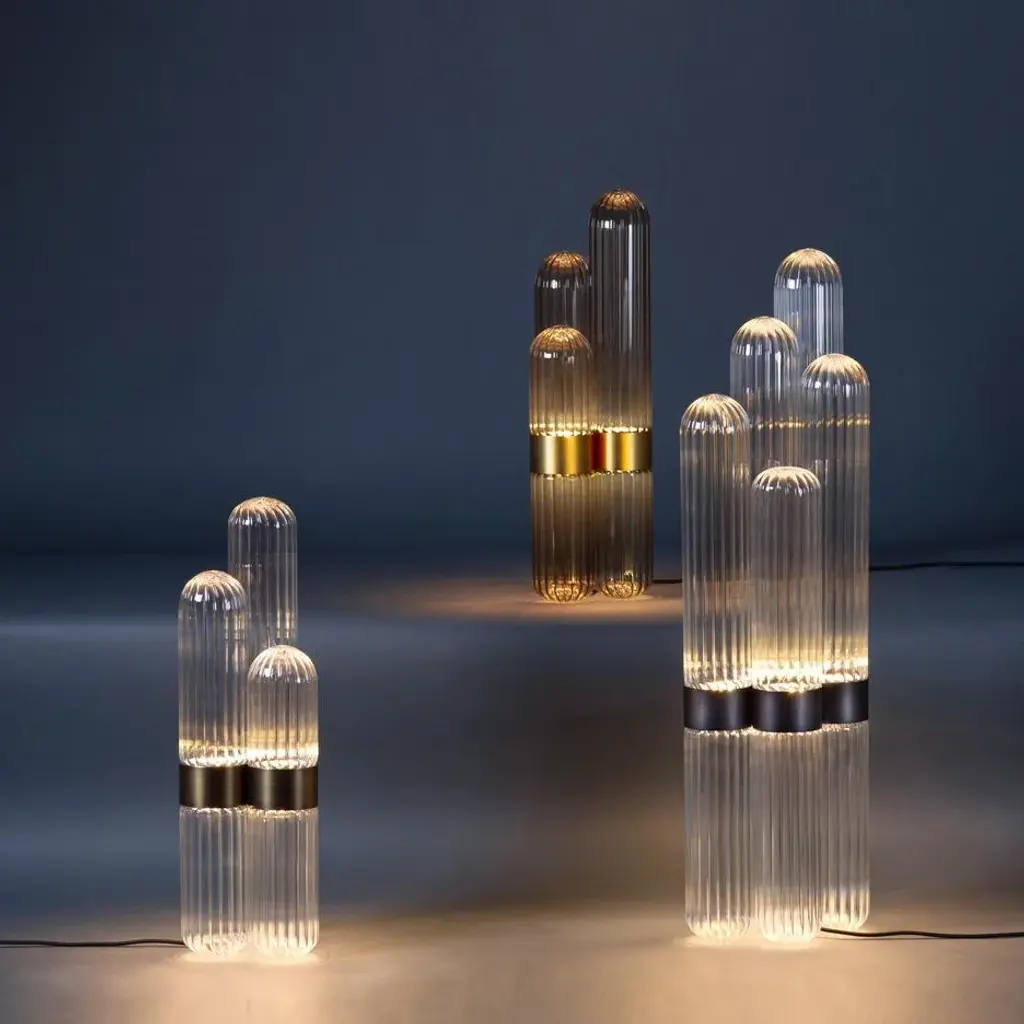 Big Cactus Floor Lamp In Transparent With Black Centrepiece By Mickael Koska For Pulpo