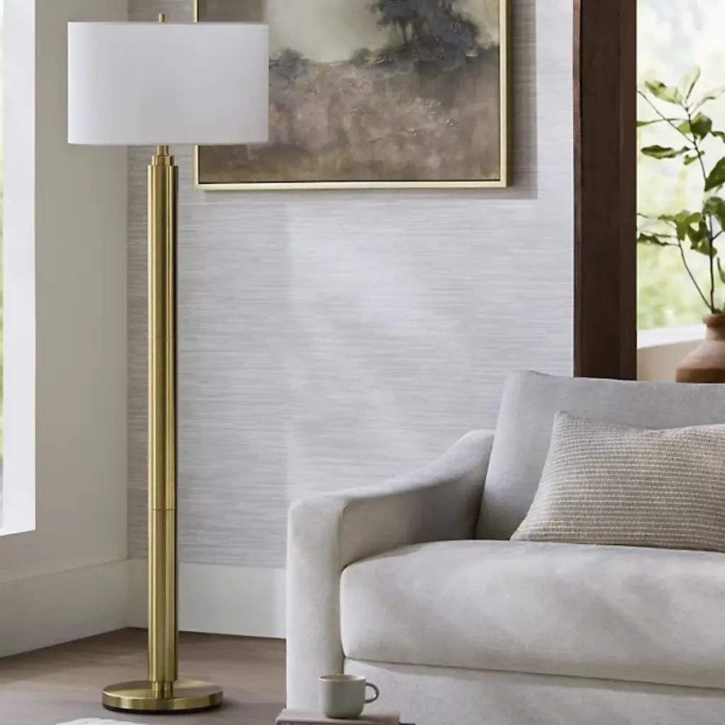 The Bilyana Floor Lamp from Surya celebrates Arts & Crafts heritage with its architectural iron framework. Unlike more decorative options, this piece embraces honest craftsmanship with its exposed metal structure and straightforward drum shade. Its linen diffuser creates a warm glow that's ideal for reading spaces, while the polyester lining ensures the shade maintains its perfect form. This lamp brings a grounded presence to living rooms with its substantial iron base and clean lines. Its simple socket-mounted on/off switch keeps technology hidden, letting the material quality and proportions speak for themselves.