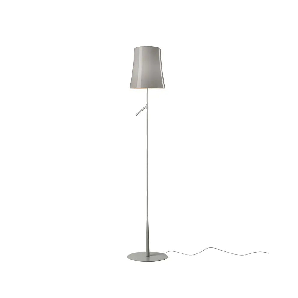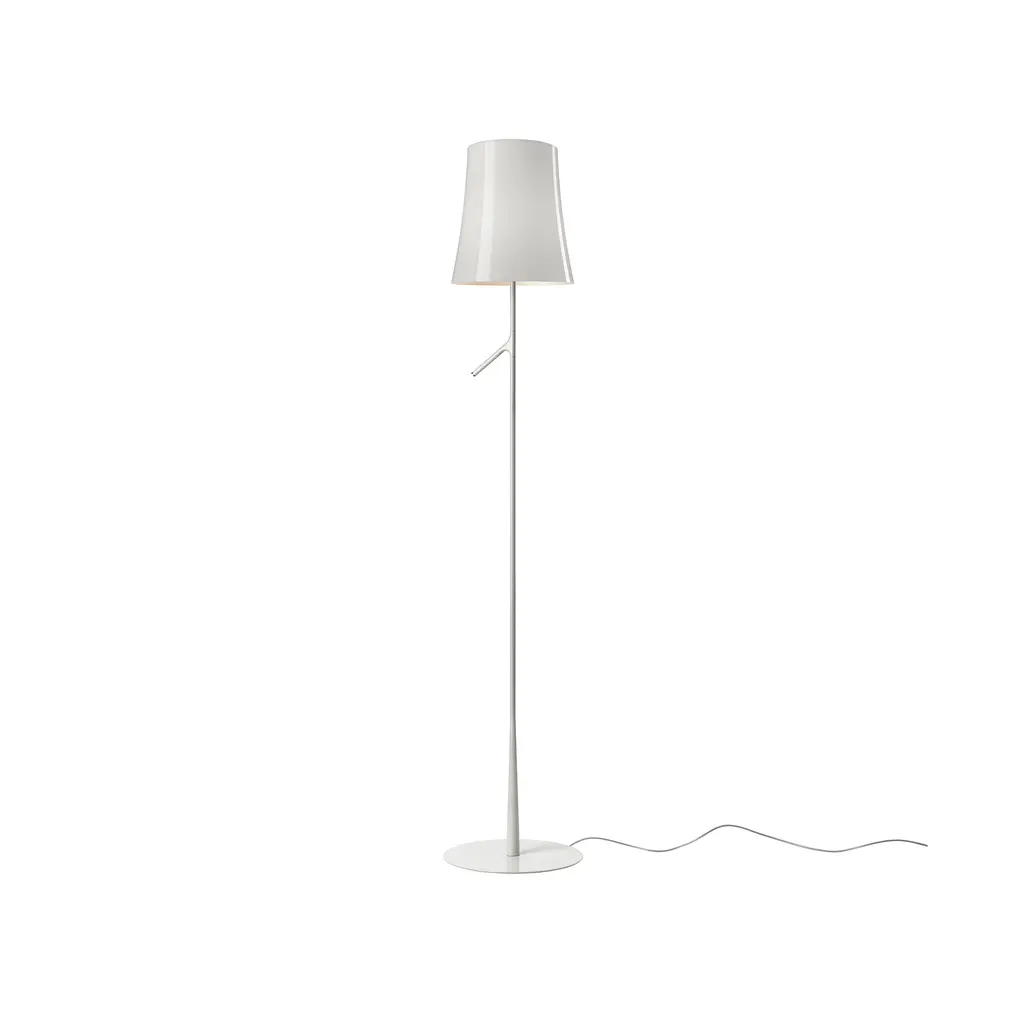 Birdie stands like a sapling indoors—its slender metal stem the trunk, its polycarbonate shade a modern nod to the classic reading lamp. A small “branch” juts out invitingly; brush it and an integrated touch-sensor brings the light to life or dims it for evening calm. Designed by Ludovica + Roberto Palomba for Foscarini, the floor version slips easily beside a sofa, armchair, or bedside while adding a dash of personality in monochrome finishes that range from quietly white to statement-making grey. Lightweight yet sturdy, Birdie blends Italian craft with everyday practicality—an elegant companion for late-night novels, weekend lounging, or simply brightening the room with its welcoming glow.