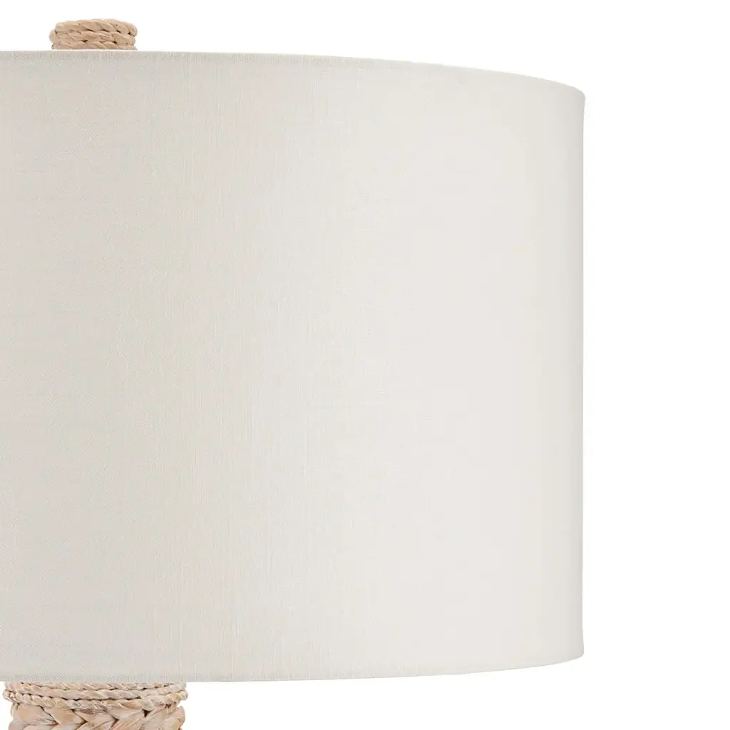 The knobby weave of water hyacinth that covers the Birdsong Whitewash Floor Lamp takes an artisan a remarkable length of time to achieve to create such visual consistency. The rope floor lamp is statuesque in scale and is a cohesive composition with its finial that matches its body. An off-white linen drum shade adds to the incredible texture this woven white floor lamp exudes. Ships In 7-10 Business Days This image is for illustrative purposes only. The colors shown are accurate within the constraints of lighting, photography, and the color accuracy of your screen.