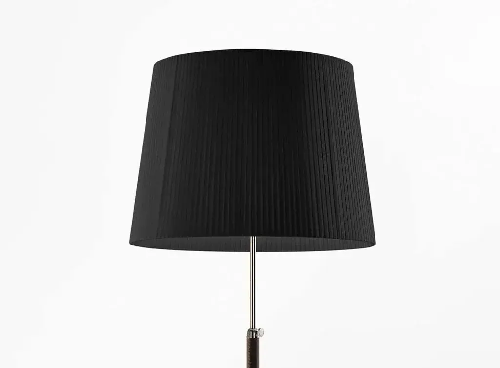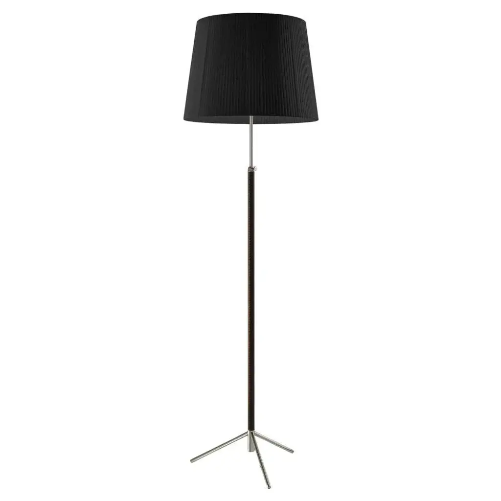Black and chrome pie de salón g1 floor lamp by jaume sans dimensions: d 45 x h 120-160 cm. Materials: metal, leather, ribbon. Available in chrome-plated or polished brass structure. Available in other shade colors and sizes. This slender synthesis of traditional lamps is a sparkle of timeless elegance created in a context of the avant-garde. The combination of materials with its symmetrical, leather-wrapped centre shaft, its choice of three shade materials and eight colour options make it a paradigm of industrial craftsmanship. Height adjustable lampshade. Dimmer included. this piece is attributed to the mentioned designer/maker. It has no attribution mark and no official proof of authenticity, however it is well documented in design history. I take full responsibility for any authenticity issues arising from misattribution, up to 250v (europe/uk standard).