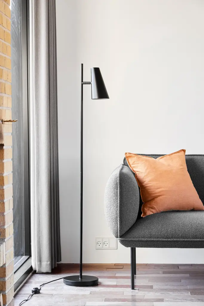 Black Cono floor lamp by Benny Frandsen.Materials: Metal.Dimensions: D 23 x H 141.5 cm.Benny Frandsen is a renowned and experienced danish designer and founder of the lighting company frandsen, which has designed, manufactured and marketed lampssince 1968. Since the very beginning, Benny Frandsen has been passionate about sharing his predilection for classic designs, made of high-quality materials. His flairfor scandinavian aesthetics has resulted in numerous international lighting design rewards during the years.WOUDThe founders, Mia and Torben Koed, decided to put their 30 years of experience into a new project. It was time for a change and a new challenge. The challenge was to build an ambitious design brand from the ground up with high-quality materials and great attention to the little details. With a drive to create new originals, the WOUD collection is founded upon the idea to look ahead instead of looking back and share the love for honest design. Therefore, we are eager to discover and develop new ideas whether it being in form, function or choice of material. All our lamps can be wired according to each country. If sold to the USA it will be wired for the USA for instance.