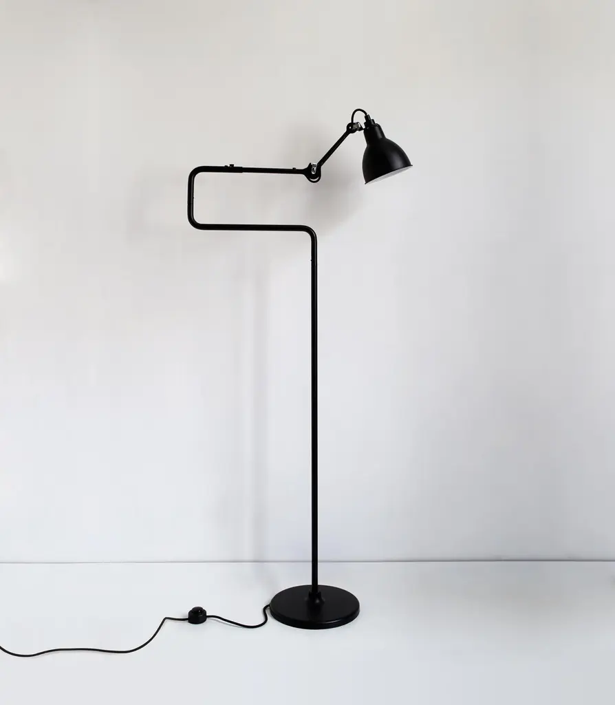 Black Lampe Gras N° 411 floor lamp by Bernard-Albin GrasDimensions: D 72 x W 32 x H 211 cm.Materials: Steel.Also available: different colors and other shade available.All our lamps can be wired according to each country. If sold to the USA it will be wired for the USA for instance.Steel reading floor lamp. It has grand proportions, is highly adjustable and graphic, and the ideal height for use at the end of the sofa. It knows how to be graceful and discreet.In 1921, Bernard-Albin Gras created a range of lamps for industry and design offices. The Lampe Gras is astonishing by its ergonomics and the simplicity of its mechanics - no screws, no welding - which gives it foolproof robustness. But Bernard-Albin Gras is also one of the first designers of the twentieth century: not content to innovate, he adds an original functional aesthetic to his creations, particularly in the design of the bases and connecting rods.Early on Le Corbusier was seduced by the modern design and user-friendliness of the lamps and became one of Bernard-Albin Gras’s most enthusiastic supporters using the lamps in his own offices as well as employing them in numerous architectural projects all over the world.The Lampe Gras then became a legend. Robert Mallet-Stevens, Jacques-Emile Ruhlmann, Eileen Gray, but also Sonia Delaunay, Georges Braque… This is the first time in the history of lighting that a lamp has been used in workshops, houses and buildings. apartments. Today this lamp is collected by enthusiasts around the world, especially in France, the United States and Japan. Bernard-Albin Gras talented and visionary design has proven to be timeless. DCW éditions has acquired the exclusive rights to the GRAS line of lamps.