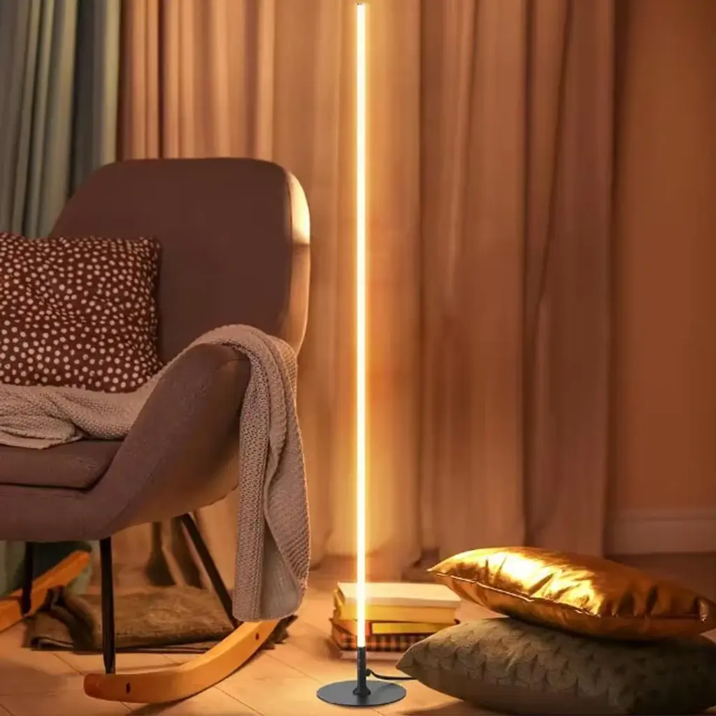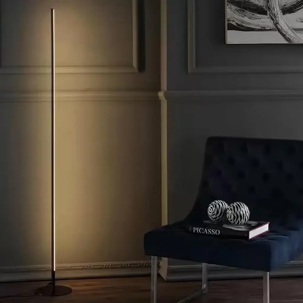 When a room calls for understated modernism, this floor lamp answers with the perfect balance of minimalism and statement-making design. The energy-efficient built-in LEDs cast a warm glow from the slim line bar base. Finished with a classic silk-wrapped cord, as beautiful displayed as hidden. Highlights ETL Listed Assembled dimension: 59.5 in. high x 8 in. wide x 8 in. deep Color: black Body material: metal Base material: metal 6 ft. black silk cord Maximum wattage: 21.5-Watt Dimmer switch Includes: one (1) lamp(s) Minor assembly required Lumens: 1449 Color temperature: 3000K