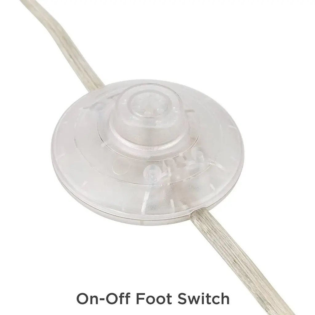 PRODUCT DETAILS: 72" high overall. Base is 12 1/2" wide x 2" high. Shade is 15" wide x 8 1/2" high. Weighs 25 lbs. Center of pole to outside edge of the shade is 50". Bottom of the shade to floor is 60". Uses one maximum 150 watt standard-medium base bulb (not included). On-off foot switch on the cord, 24" to 30" from the base. Contemporary modern arc floor lamp with smart socket from the Cora collection by the 360 Lighting brand. Black finish over metal construction. White linen fabric drum shade. Includes a smart plug that allows you to remotely control the lamp from an app or your Smart Home system. Works with your home WiFi system. Requires the Smart Life App, available in your app store. Compatible with Amazon Alexa and Google Home. From the Tesler brand. Comes with 8-foot long black cord. DESCRIPTION: Designed by 360 Lighting, this modern arc floor lamp includes a smart socket that adds the convenience of voice or app control. The chic silhouette of the lamp is complemented with a neutral black finish, ensuring it works in most settings. A drum shade in white linen creates diffused, true illumination that's great for reading or ambiance.