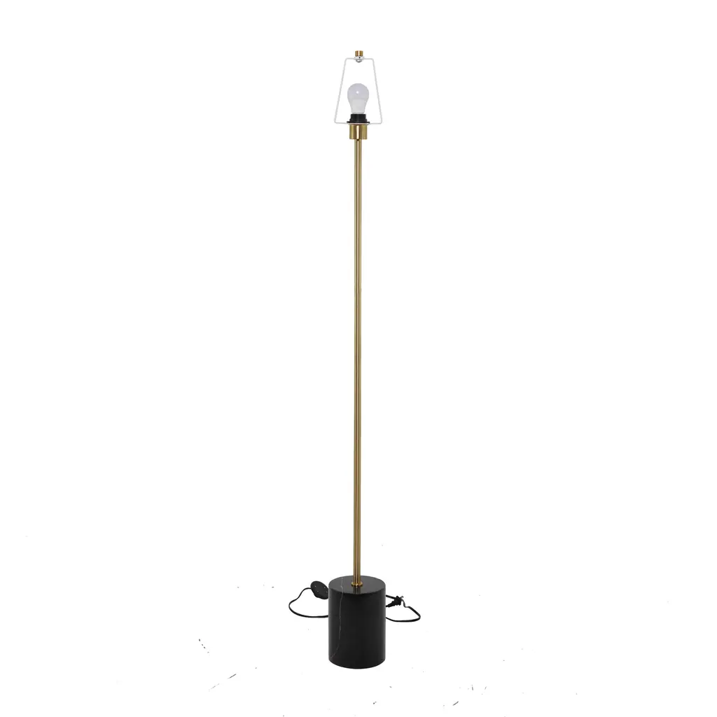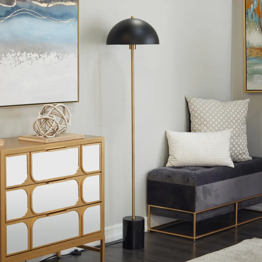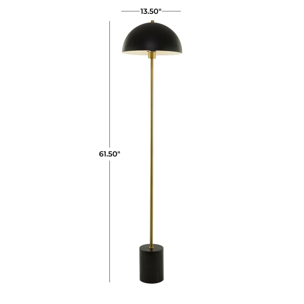 Add ambient lighting to your living room, bedroom, hallways, or entryways with this contemporary floor lamp for a chic and classy vibe. Brighten up any room to create a warming atmosphere for you and your guests with this chic floor lamp Designed with rubber stopper at the base that prevent scratching on surface floor, as well as sliding around. Comes with a socket for a medium-sized E26 bulb. Bulb not included. Item comes shipped in one carton. Suitable for indoor use only. Furnished with a metal dome shade . Marble is a product of nature and no two pieces are exactly alike; it is prone to variations in color and/or patterns in the material that adds to the beauty and charm of the piece. Contemporary design. The cord is approximately 60 inches long. This floor lamp has an on off switch.