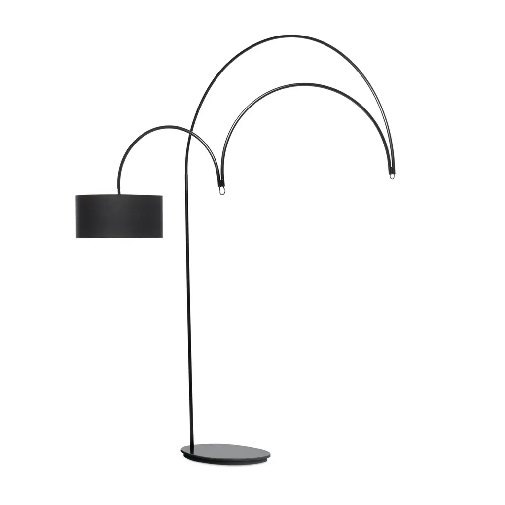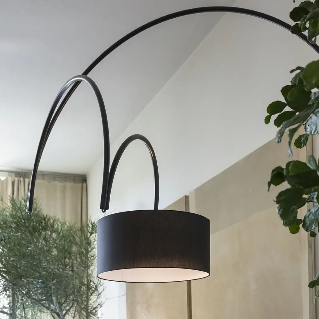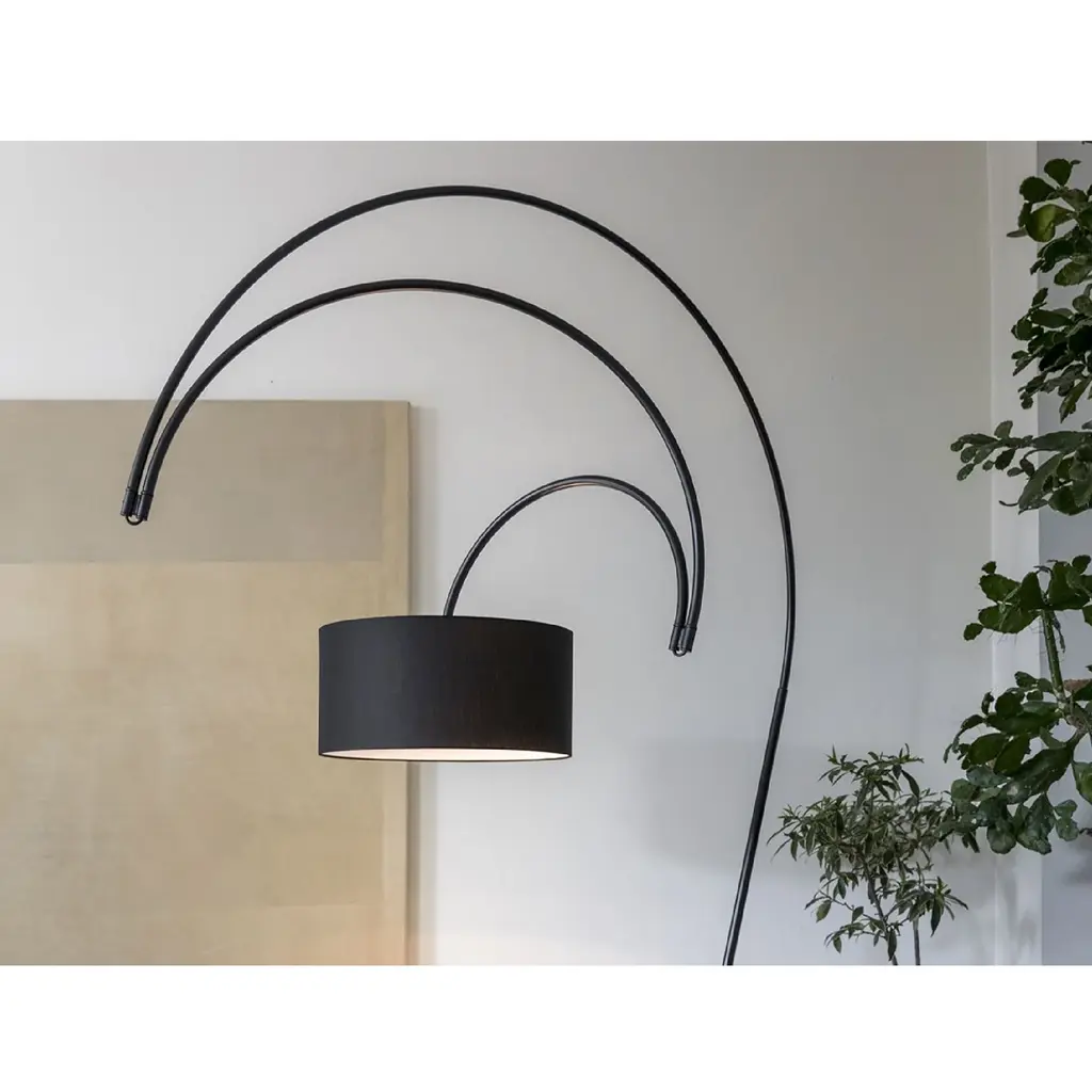 Indulge in the elegant and exclusive Sott'archi floor lamp from Mogg. Crafted with black metal and a cotton fabric shade, this versatile lamp allows for adjustable direct lighting up to 3 meters. Perfect for lighting up a table, desk, or book, this lamp is a sophisticated addition to any space.