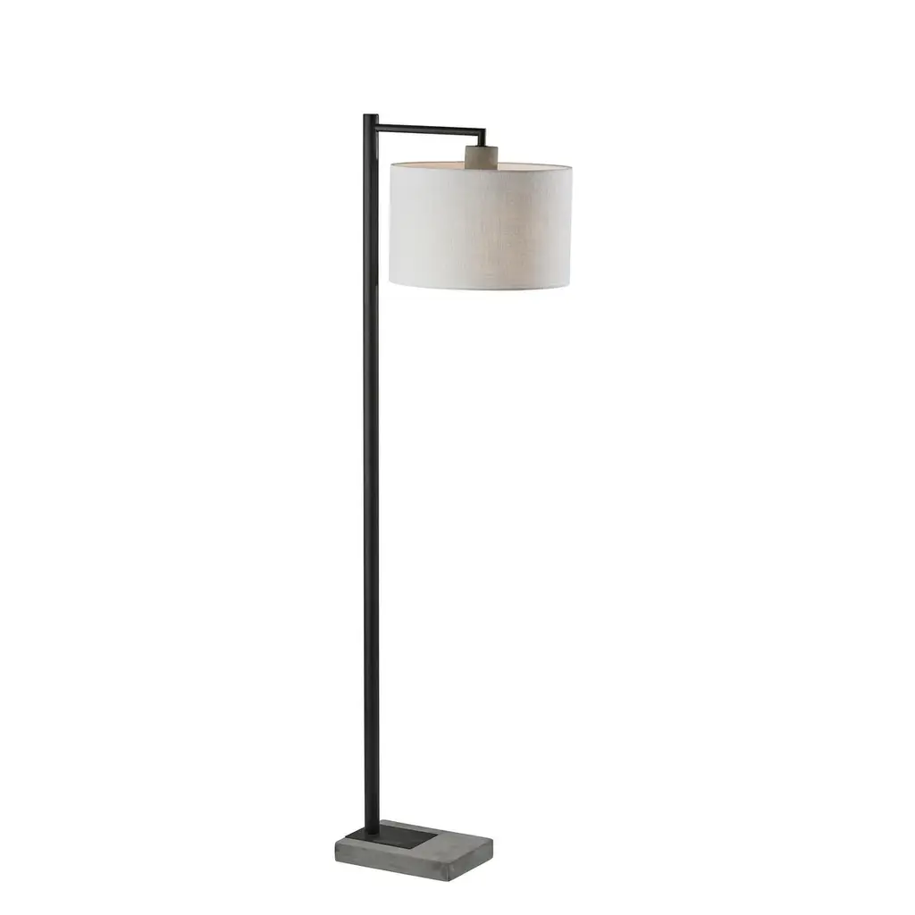 Black Metal Floor Lamp With Cement Accent Base - Black