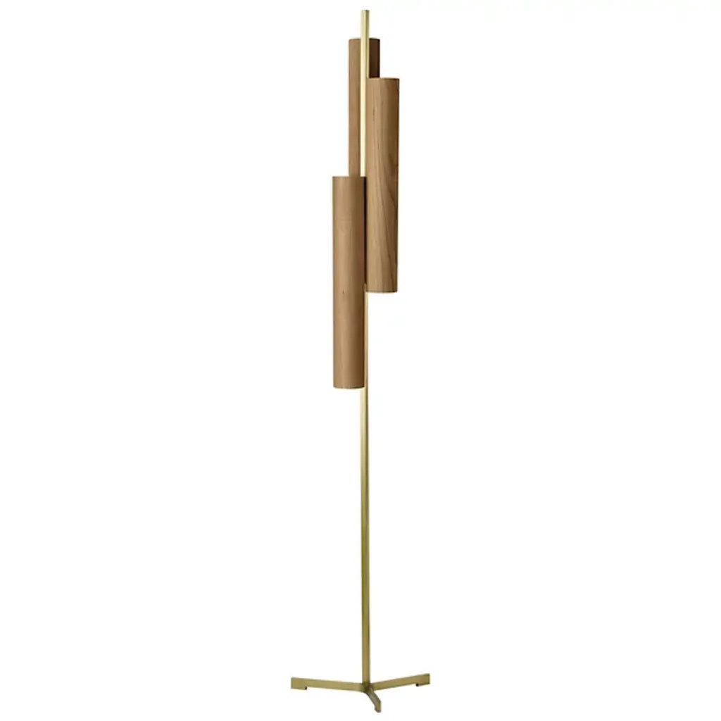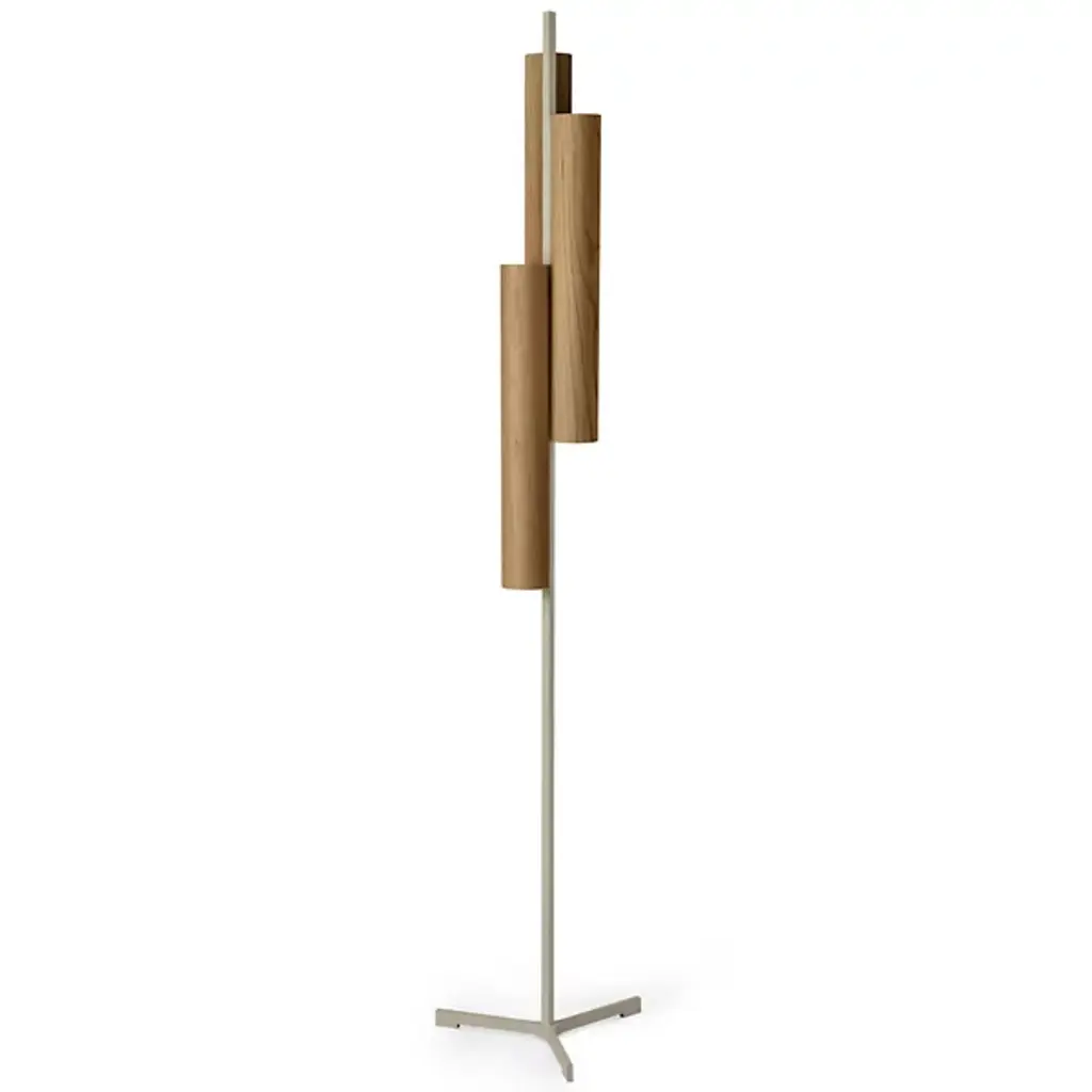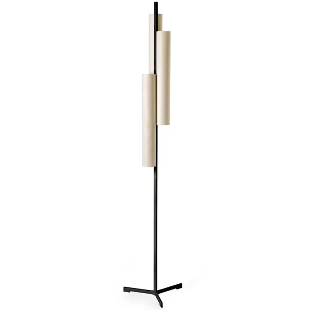 Harmony and height for modern interiors. The Black Note Triplet LED Floor Lamp by LZF features 3 tall cylindrical shades arranged in a cluster around the top of a similarly tall and slim Metal stem. The proportions of the shades complement that of the base, while the unique grain of the real molded Wood Veneer offers natural contrast. The glow of the energy efficient LEDs within each shade really highlights the singular visual texture. The compact footprint of this modern floor lamp allows it to fit into living spaces narrow or wide, injecting them with its distinctively musical warmth and style.