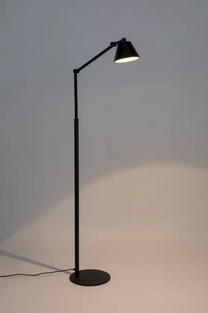 Floor lamp Lub has the same wonderful features as its smaller brothers: wall lamp and desk lamp Lub. Like them, it has a sturdy matte black metal stand that is adjustable in different ways, so you can make sure the light falls where you need it most. More than the other family members, this tall Lub is defined by its slender silhouette. Ideal for your favourite reading nook or any dark corner for that matter.