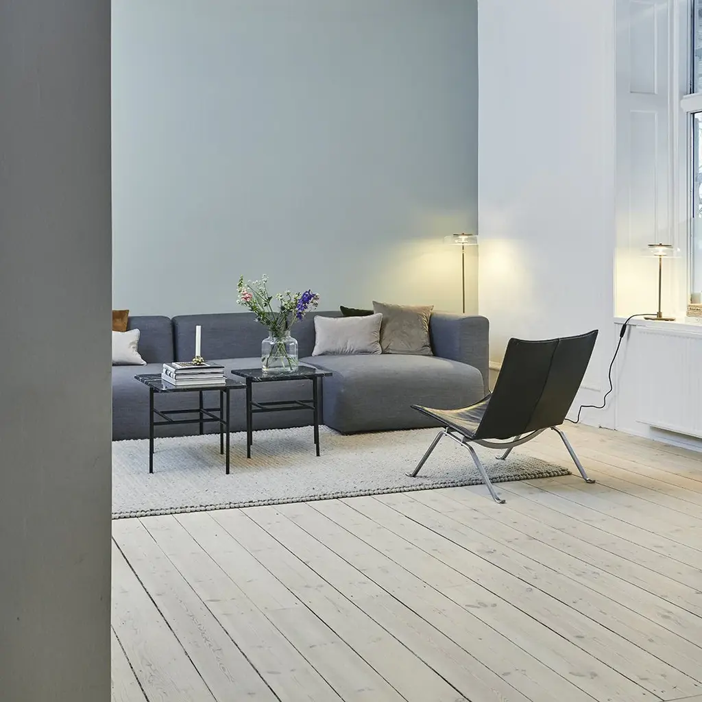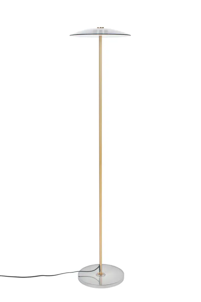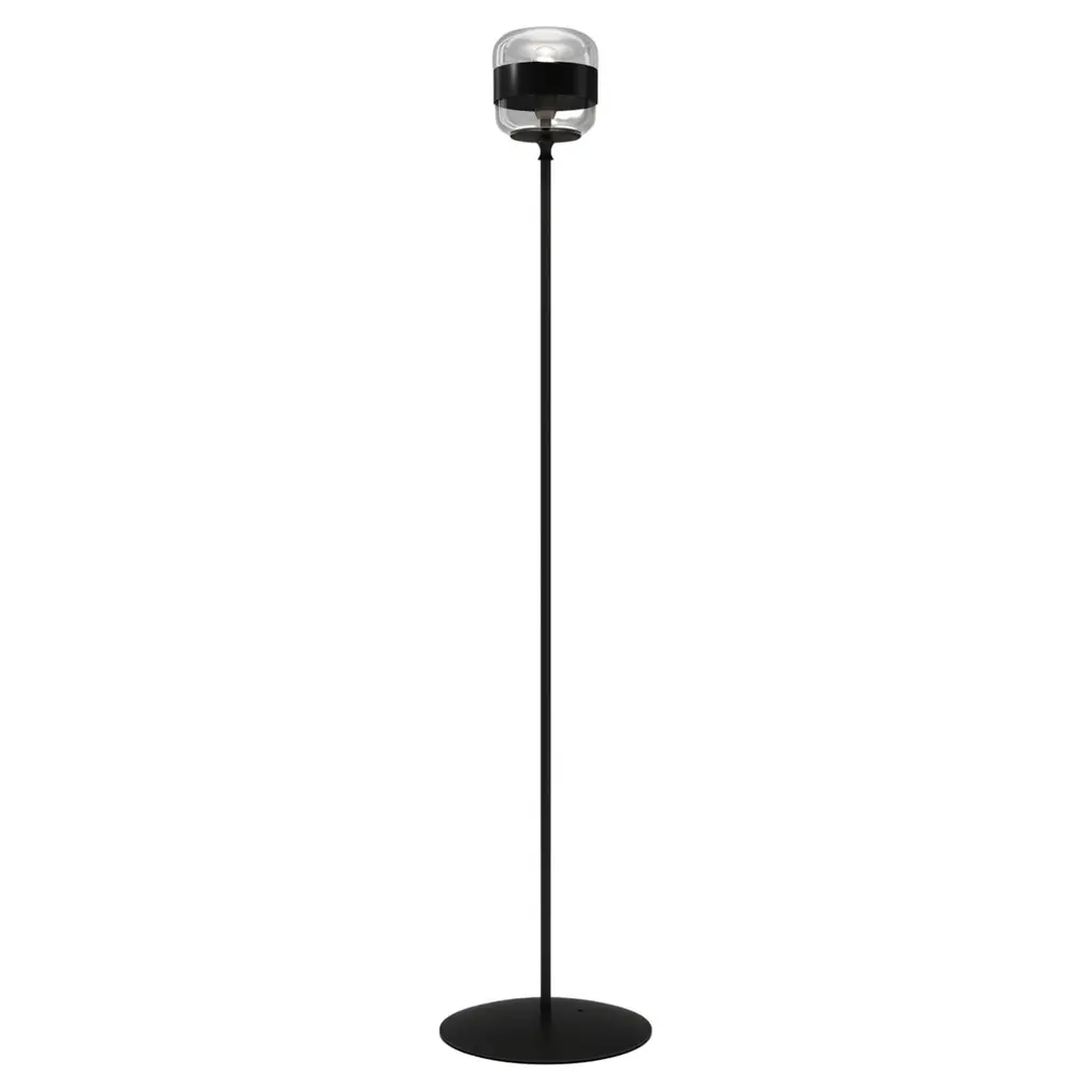 Blossi Floor lamp with a black metal structure and an opal glass shade. The Blossi collection is produced with advanced LED technology. A special developed LED disc reflects the light in the mouth-blown glass shade, spreading a soft and indirect light. Cable with dimmer.