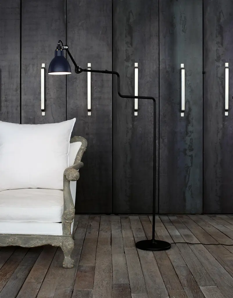 Blue lampe Gras N° 411 Floor Lamp by Bernard-Albin GrasDimensions: D 72 x W 32 x H 211 cmMaterials: SteelAlso available: Different colors and other shade available.All our lamps can be wired according to each country. If sold to the USA it will be wired for the USA for instance.Steel reading floor lamp. It has grand proportions, is highly adjustable and graphic, and the ideal height for use at the end of the sofa. It knows how to be graceful and discreet.In 1921, Bernard-Albin Gras created a range of lamps for industry and design offices. The Lampe Gras is astonishing by its ergonomics and the simplicity of its mechanics - no screws, no welding - which gives it foolproof robustness. But Bernard-Albin Gras is also one of the first designers of the twentieth century: not content to innovate, he adds an original functional aesthetic to his creations, particularly in the design of the bases and connecting rods.Early on Le Corbusier was seduced by the modern design and user-friendliness of the lamps and became one of Bernard-Albin Gras’s most enthusiastic supporters using the lamps in his own offices as well as employing them in numerous architectural projects all over the world.The Lampe Gras then became a legend. Robert Mallet-Stevens, Jacques-Emile Ruhlmann, Eileen Gray, but also Sonia Delaunay, Georges Braque… This is the first time in the history of lighting that a lamp has been used in workshops, houses and buildings. apartments. Today this lamp is collected by enthusiasts around the world, especially in France, the United States and Japan. Bernard-Albin Gras talented and visionary design has proven to be timeless. DCW éditions has acquired the exclusive rights to the GRAS line of lamps.