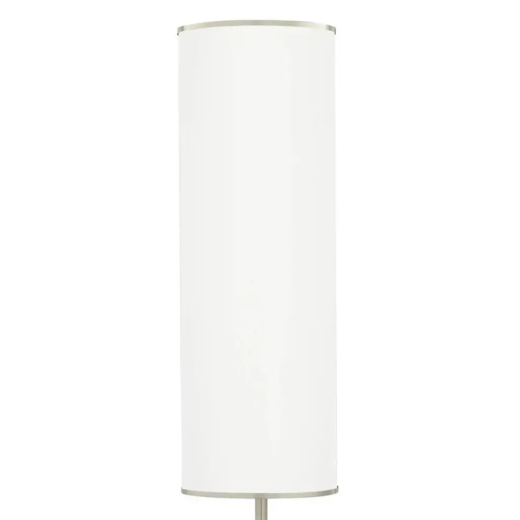 PRODUCT DETAILS: 62" high overall. Bottom base is 11" wide. Shade is 36" high x 12" wide. Weighs 15. lbs. Uses one maximum 150 watt standard-medium base bulb (not included). On-off rotary switch. Contemporary modern glass floor lamp from the Color + Plus lighting collection. Blue Sky designer base color. Round glass body. Brushed nickel finish accents. Metal construction. White linen cylinder shade with top and bottom metal trim. 8-foot long silver cord and plug. DESCRIPTION: Liven up your living space with this contemporary floor lamp from the Color + Plus™ collection. It comes in a brushed nickel finish metal frame, which supports a round glass body in a designer Blue Sky color. A long white cylinder shade covers over half the design. The result is an eye-catching modern glass floor lamp with brilliant coloring.