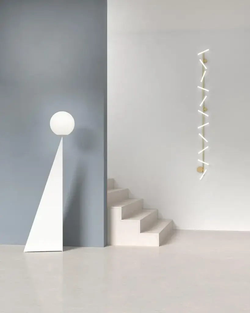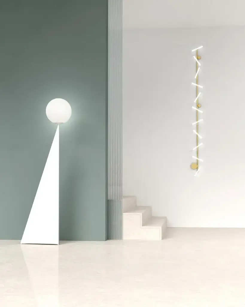 Bonhomme floor light by atelier areti dimensions: d 27 x w 53.7 x h 171 cm. Materials: powder-coated metal, white glass. All our lamps can be wired according to each country. If sold to the usa it will be wired for the usa for instance up to 250v (europe/uk standard).