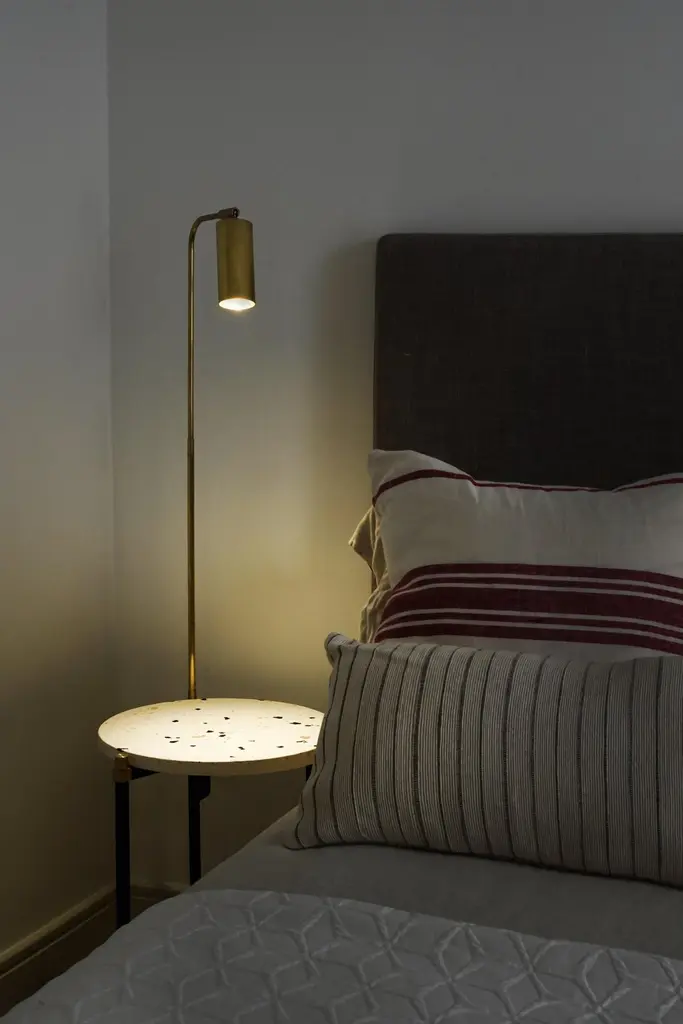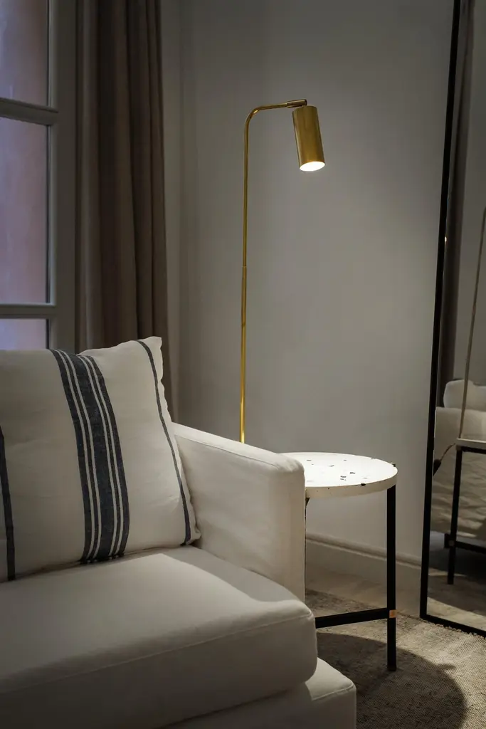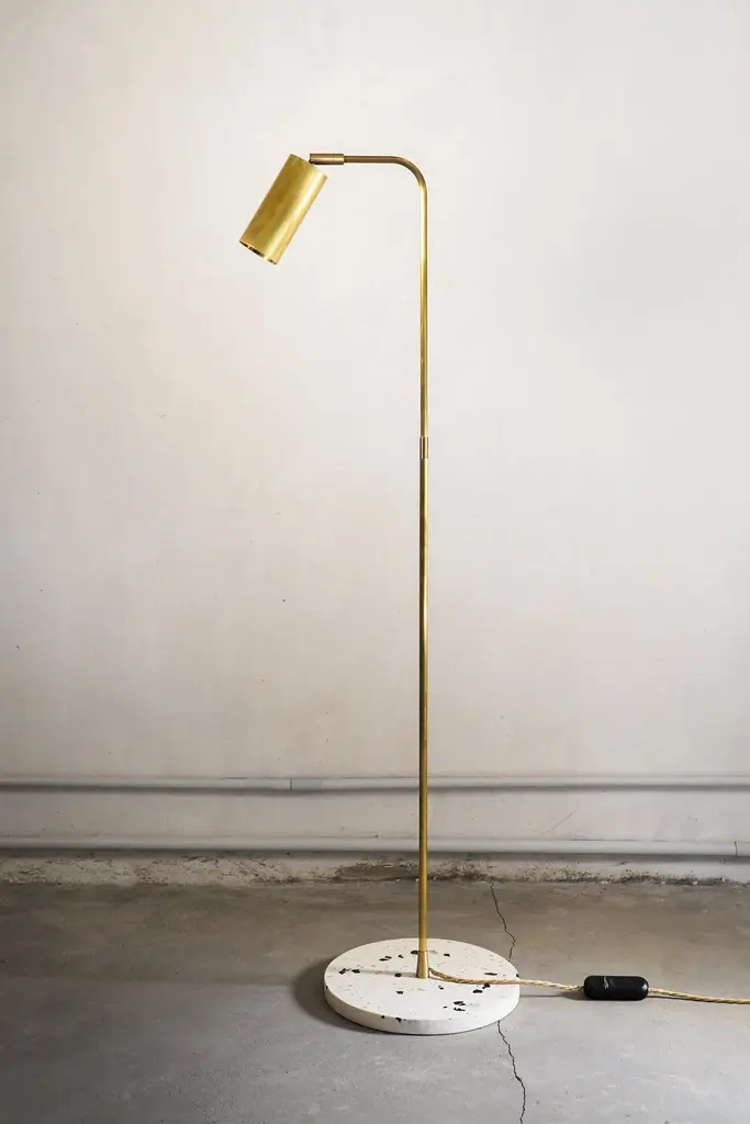 Book XL floor arm lightby ContainDimensions: D 28 x W 28 x H 130 cm Materials: brass structure and stone base.Also available in different finishes. All our lamps can be wired according to each country. If sold to the USA it will be wired for the USA for instance.“You are where you live” So, we decided to live in Mallorca. We are Mauricio Obarrio and Juan Peralta and Contain is our lighting and furniture design studio.This collection is the result of the collaboration between our studio, local artisans and the industrial sector; where creativity and simplicity creates a unique synergy and generates a narrative between the materials used and the pieces created. Our mission is to deliver artisan crafted, highly engineered, sophisticated yet simple lighting design solutions. Our studio's inspiration is fueled by an obsession with natural materials such as brass, glass, and hardwoods along with a love for artisan craftsmanship.