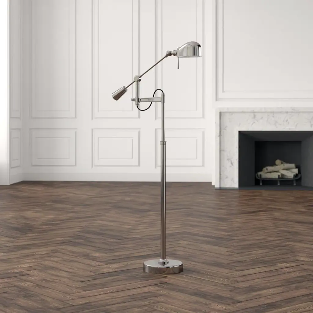 The RL by Ralph Lauren is a clever, vintage-inspired design. Boom arms in bronze, nickel, or brass articulate at multiple points, providing focused light where needed, perfect for contemporary or traditional sitting areas.