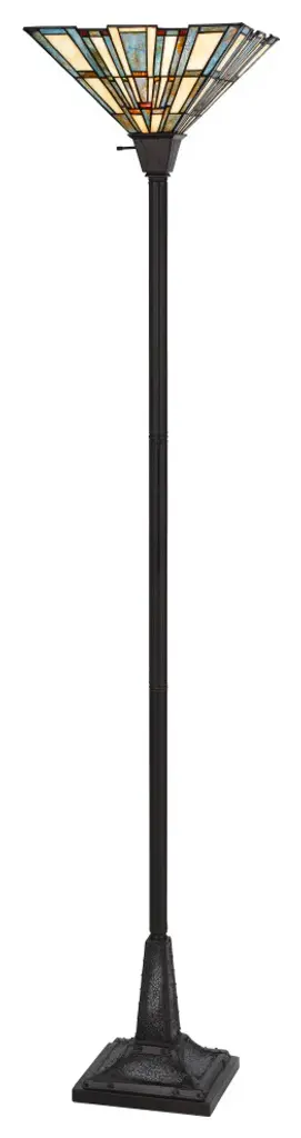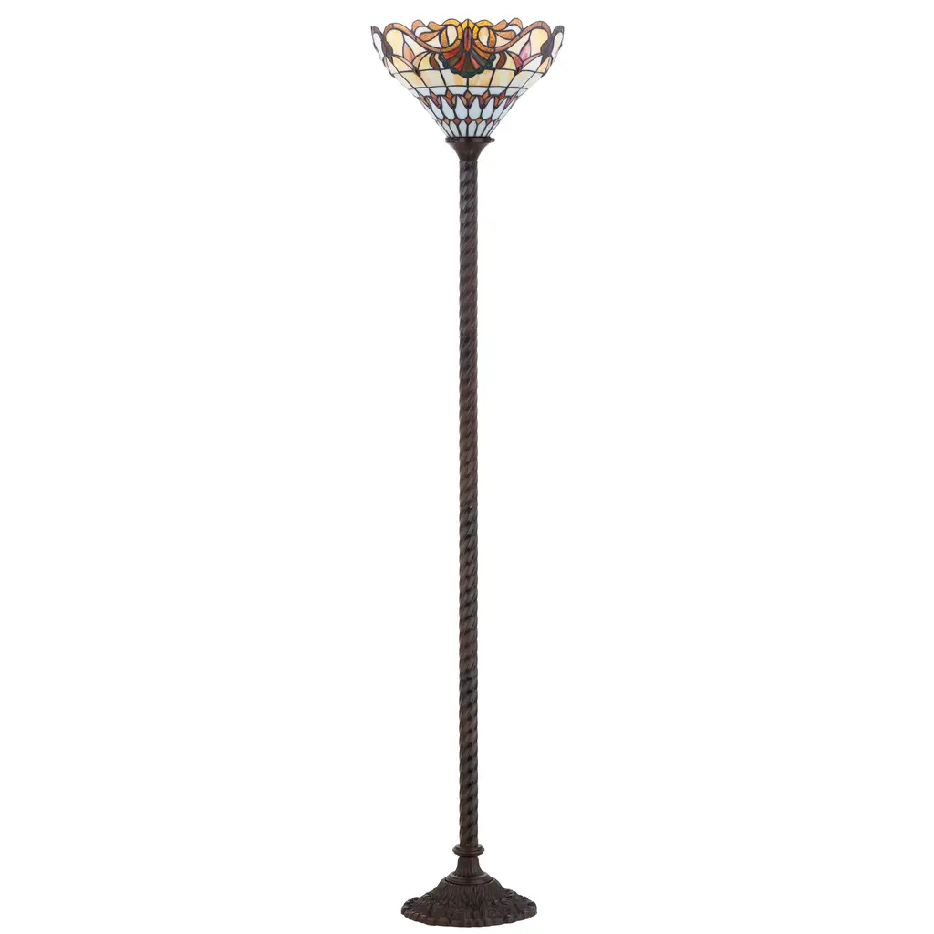 One of the finest techniques to come out of the Art Nouveau movement, the Tiffany-style stained glass shade on this torchiere floor lamp makes for a stunning addition to any space. While steeped in traditional design with it's barley-twist base and romantic baroque motif on the shade, this piece is updated with the functionality expected today -- a step-on on/off button, LED bulb compatibility, and a beautiful silk-wrapped cord. Each shade is handmade by artisans who specialize in the intricate art of stained glass soldering. Features:Dimensions:About us:You see a lamp.We see a decorative work of art.A perfectly curved shade casts a dramatic shadow on a floor. A silk cord you never want to hide. LED lightbulbs: as easy on the environment as they are on the eyes. The JONATHAN Y Lighting collection considers every detail from impeccably sourced materials to designer styling. And our prices are so attractive, we've transformed a functional necessity into a fashion accessory.JONATHAN Y Lighting ... a fashion revolution in home décor.