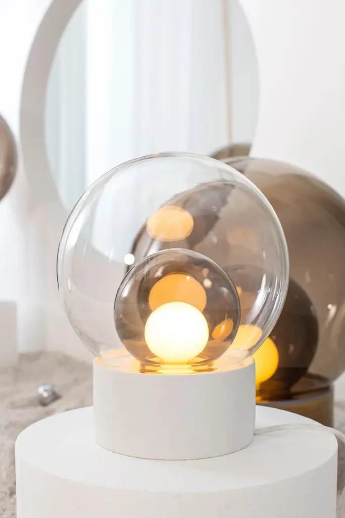 Boule high smoky grey opal white black floor lamp by PulpoDimensions: D52 x H82.5cmMaterials: ceramic, handblown glass, coloured, textile.Also available in different finishes: transparent opal white black, transparent smoky grey black, smoky grey opal white black, smoky grey smoky grey black, transparent opal white, white transparent smoky grey white, smoky grey opal white white, smoky grey smoky grey white, smoky grey smoky grey colombia.The boule series: consisting of a table light, a short floor light and a tall floor light, bring a bold scale to their ambient output. Sitting atop a simple porcelain base, the series allows for the reflected and refracted radiance to take centre stage; captivating onlookers well into the warm evening.Each piece is created from transparent or coloured handblown glass. The base is produced from porcelain with a mat glaze. Bubbles, streaks and other variations in size and colour are part of the production process, and not defects of the design or production.All our lamps can be wired according to each country. If sold to the USA it will be wired for the USA for instance.Pulpo is a design editor for high-end products in the home sector.Design is our passion. Art is our engine. We are fascinated by the craft of the ceramic and glassblowing workshops and are guided by the rough aesthetics of these unique pieces.Pulpo’s philosophy goes back to the idea of ??the “carte blanche”. Our designers and artists develop their designs freely and experimentally. A variety of materials and a weakness for structures are our strengths.The headquarters of pulpo is in Weil am Rhein, near the Swiss border. Consisting of the creative and sales department, warehouse and logistics, this is the think tank for our artists and designers. pulpo’s dealer network extends far beyond Weil am Rhein – from Iceland and Dubai to Australia.Pulpo is movement – is possibility – is passion.In 2006, pulpo was founded by Ursula and Patrick L’hoste as a design brand at the interface between shape and material. pulpo’s conception is to edit lighting, furniture and accessoires on editor’s choice. The company’s focus is to conduct up-and-coming designers and selected manufacturers, using the nature of material’s to form the score. Materials such as ceramics, stone and especially glass, which is pulpo’s primary focus since 2013.