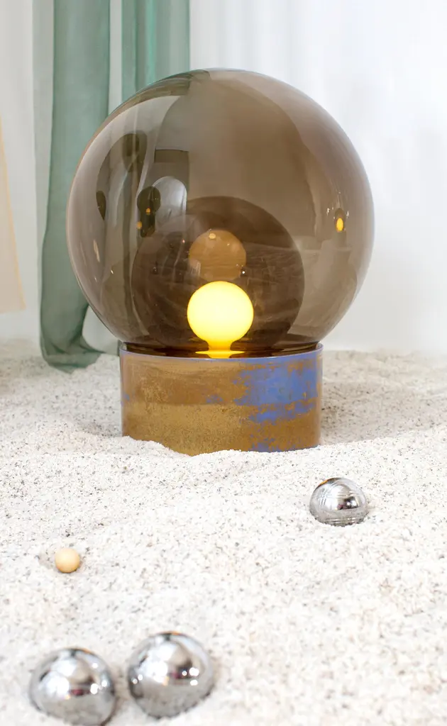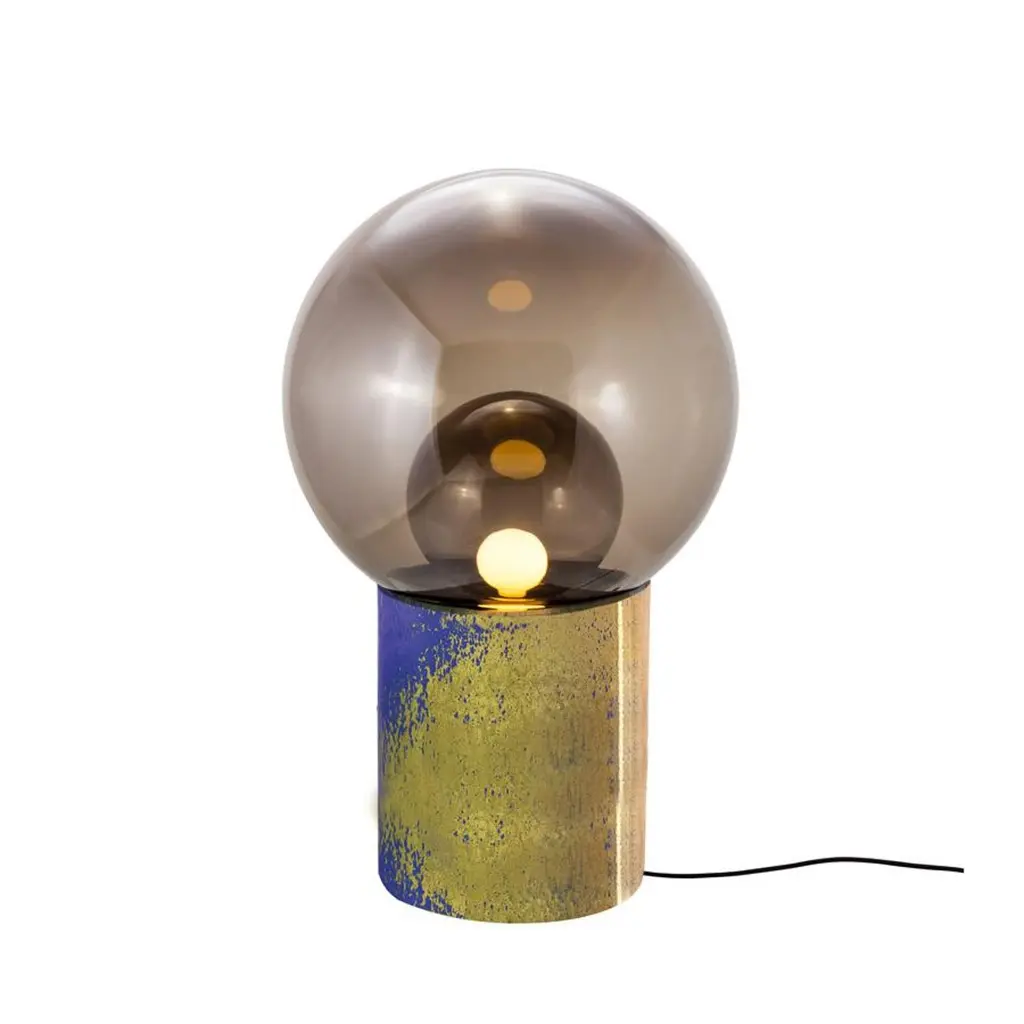Boule high smoky grey opal white black floor lamp by PulpoDimensions: D52 x H82.5cmMaterials: ceramic, handblown glass, coloured, textile.Also available in different finishes: transparent opal white black, transparent smoky grey black, smoky grey opal white black, smoky grey smoky grey black, transparent opal white, white transparent smoky grey white, smoky grey opal white white, smoky grey smoky grey white, smoky grey smoky grey colombia.The boule series: consisting of a table light, a short floor light and a tall floor light, bring a bold scale to their ambient output. Sitting atop a simple porcelain base, the series allows for the reflected and refracted radiance to take centre stage; captivating onlookers well into the warm evening.Each piece is created from transparent or coloured handblown glass. The base is produced from porcelain with a mat glaze. Bubbles, streaks and other variations in size and colour are part of the production process, and not defects of the design or production.All our lamps can be wired according to each country. If sold to the USA it will be wired for the USA for instance.Pulpo is a design editor for high-end products in the home sector.Design is our passion. Art is our engine. We are fascinated by the craft of the ceramic and glassblowing workshops and are guided by the rough aesthetics of these unique pieces.Pulpo’s philosophy goes back to the idea of ??the “carte blanche”. Our designers and artists develop their designs freely and experimentally. A variety of materials and a weakness for structures are our strengths.The headquarters of pulpo is in Weil am Rhein, near the Swiss border. Consisting of the creative and sales department, warehouse and logistics, this is the think tank for our artists and designers. pulpo’s dealer network extends far beyond Weil am Rhein – from Iceland and Dubai to Australia.Pulpo is movement – is possibility – is passion.In 2006, pulpo was founded by Ursula and Patrick L’hoste as a design brand at the interface between shape and material. pulpo’s conception is to edit lighting, furniture and accessoires on editor’s choice. The company’s focus is to conduct up-and-coming designers and selected manufacturers, using the nature of material’s to form the score. Materials such as ceramics, stone and especially glass, which is pulpo’s primary focus since 2013.