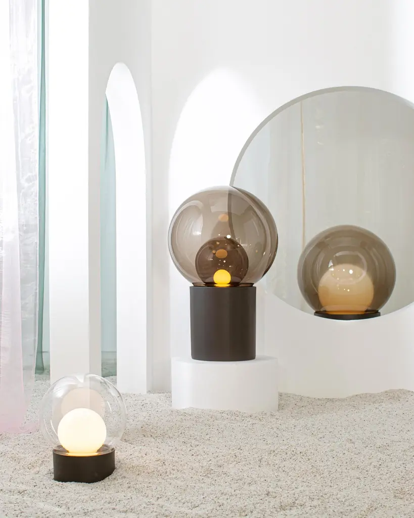 Boule medium transparent smoky grey white floor lamp by Pulpo.Dimensions: D58 x H74cm.Materials: ceramic, handblown glass, coloured, textile.Also available in different finishes: transparent opal white black, transparent smoky grey black, smoky grey opal white black, smoky grey smoky grey black, transparent opal white, white transparent smoky grey white, smoky grey opal white white, smoky grey smoky grey white, smoky grey smoky grey colombia.The boule series: consisting of a table light, a short floor light and a tall floor light, bring a bold scale to their ambient output. Sitting atop a simple porcelain base, the series allows for the reflected and refracted radiance to take centre stage; captivating onlookers well into the warm evening.Each piece is created from transparent or coloured handblown glass. The base is produced from porcelain with a mat glaze. Bubbles, streaks and other variations in size and colour are part of the production process, and not defects of the design or production.All our lamps can be wired according to each country. If sold to the USA it will be wired for the USA for instance.Pulpo is a design editor for high-end products in the home sector.Design is our passion. Art is our engine. We are fascinated by the craft of the ceramic and glassblowing workshops and are guided by the rough aesthetics of these unique pieces.Pulpo’s philosophy goes back to the idea of ??the “carte blanche”. Our designers and artists develop their designs freely and experimentally. A variety of materials and a weakness for structures are our strengths.The headquarters of pulpo is in Weil am Rhein, near the Swiss border. Consisting of the creative and sales department, warehouse and logistics, this is the think tank for our artists and designers. pulpo’s dealer network extends far beyond Weil am Rhein – from Iceland and Dubai to Australia.Pulpo is movement – is possibility – is passion.In 2006, pulpo was founded by Ursula and Patrick L’hoste as a design brand at the interface between shape and material. pulpo’s conception is to edit lighting, furniture and accessoires on editor’s choice. The company’s focus is to conduct up-and-coming designers and selected manufacturers, using the nature of material’s to form the score. Materials such as ceramics, stone and especially glass, which is pulpo’s primary focus since 2013.