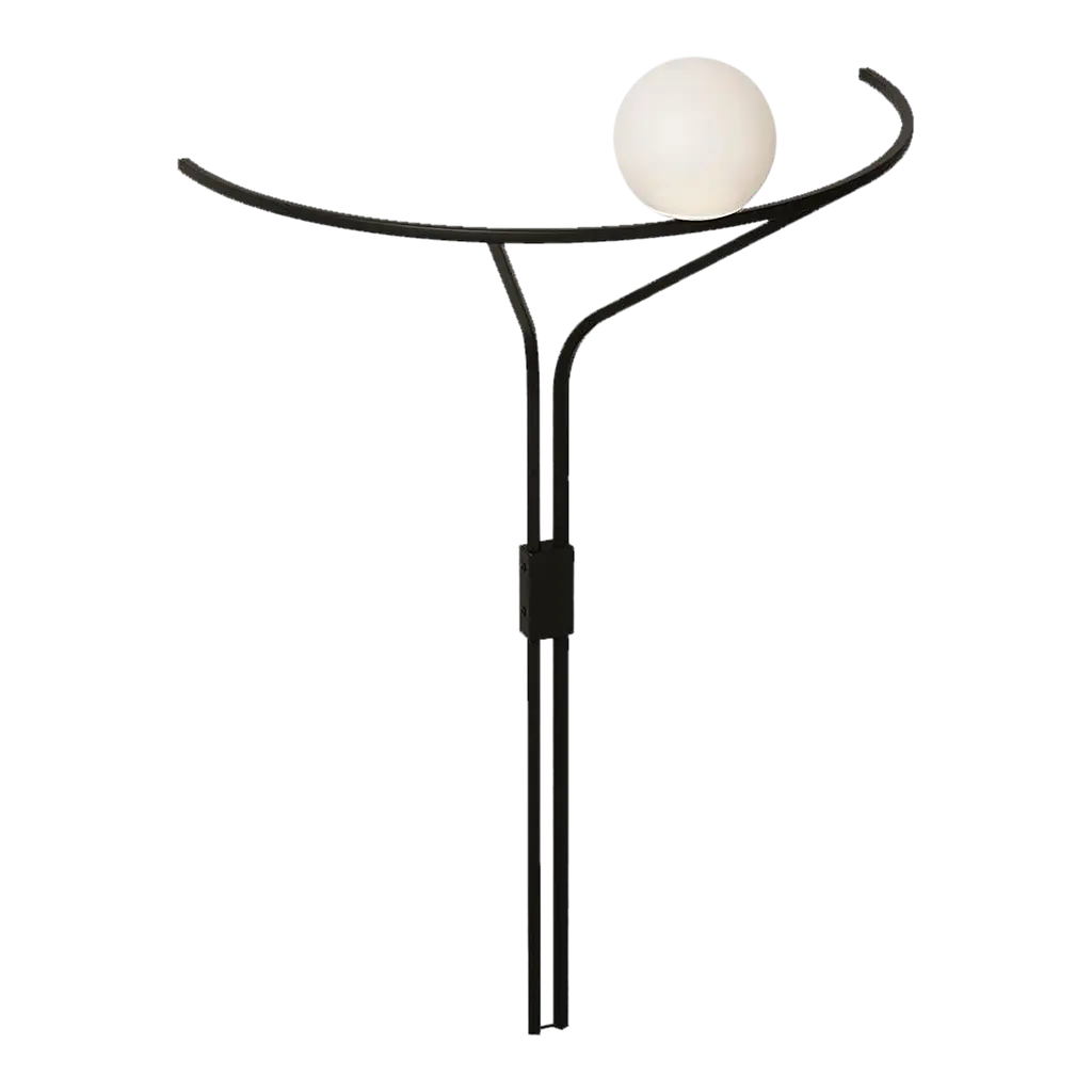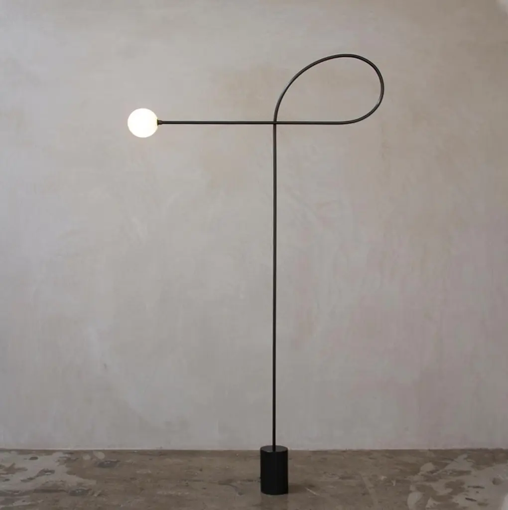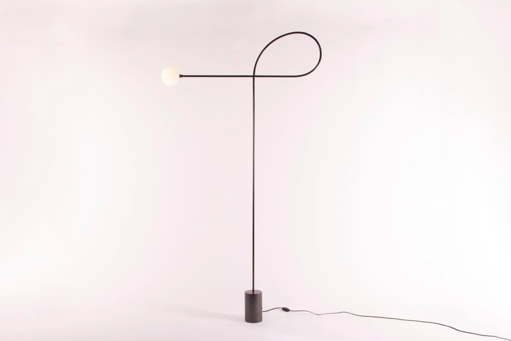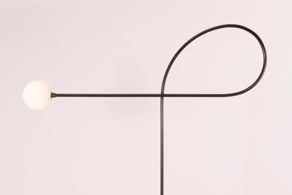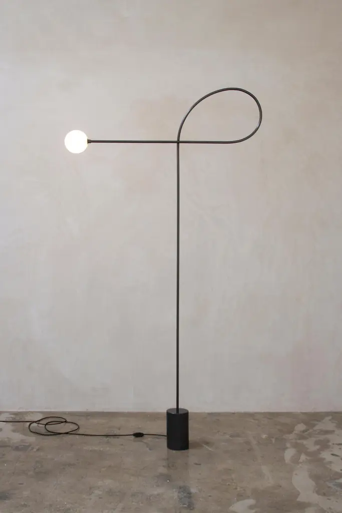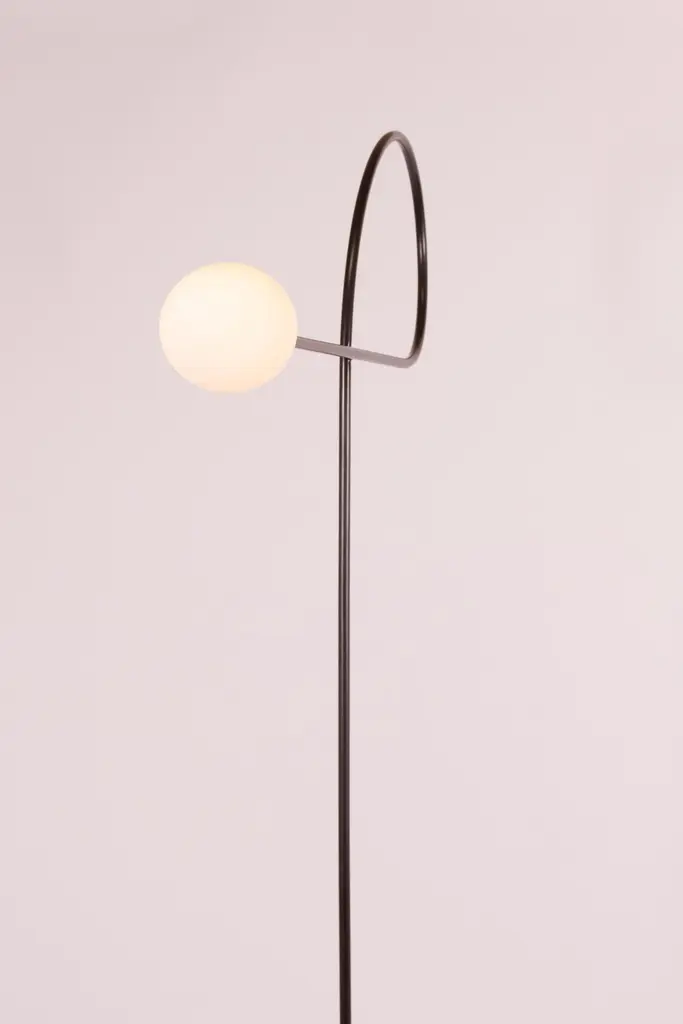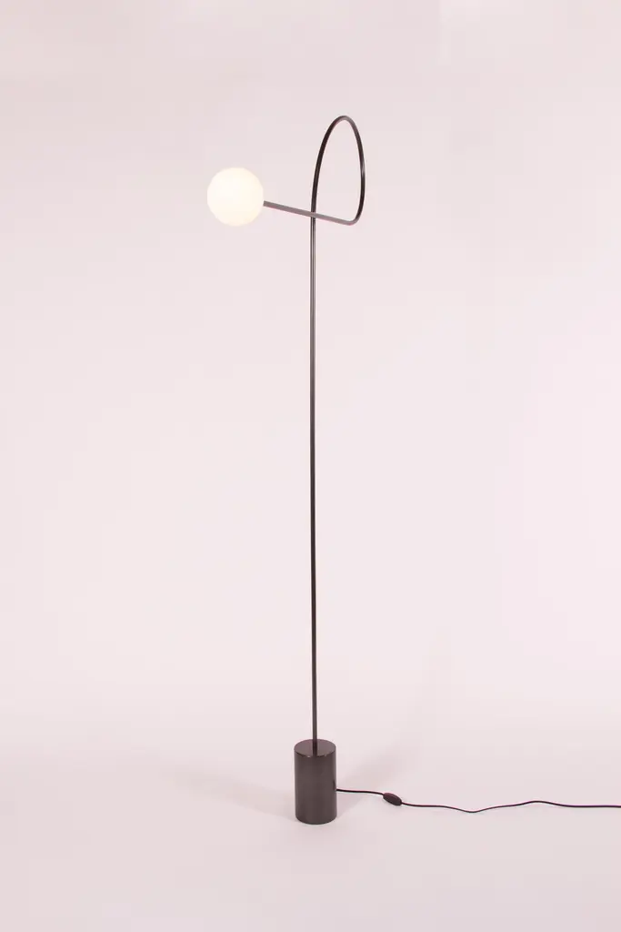 Bow floor lamp by Estudio PersonaDimensions: W 99 x D 10.2 x H 185.5 cmMaterials: Steel, hand blown glass.Floor lamp in blackened steel with hand blown glass.Customizations available.Estudio Persona was created by Emiliana Gonzalez and Jessie Young in 2014.Working as part of a deeply collaborative process, their unconventional designs are inspired by natural forms and follow sculptural lines; a distinctly neutral and minimal take on the monochromatic melancholy of their native Uruguay. Based out of their studio and showroom in Los Angeles, Estudio Persona work with natural materials in brilliantly contrasting ways. Together, the designers behind Estudio Persona embody a uniquely female and ever evolving understated creativity.