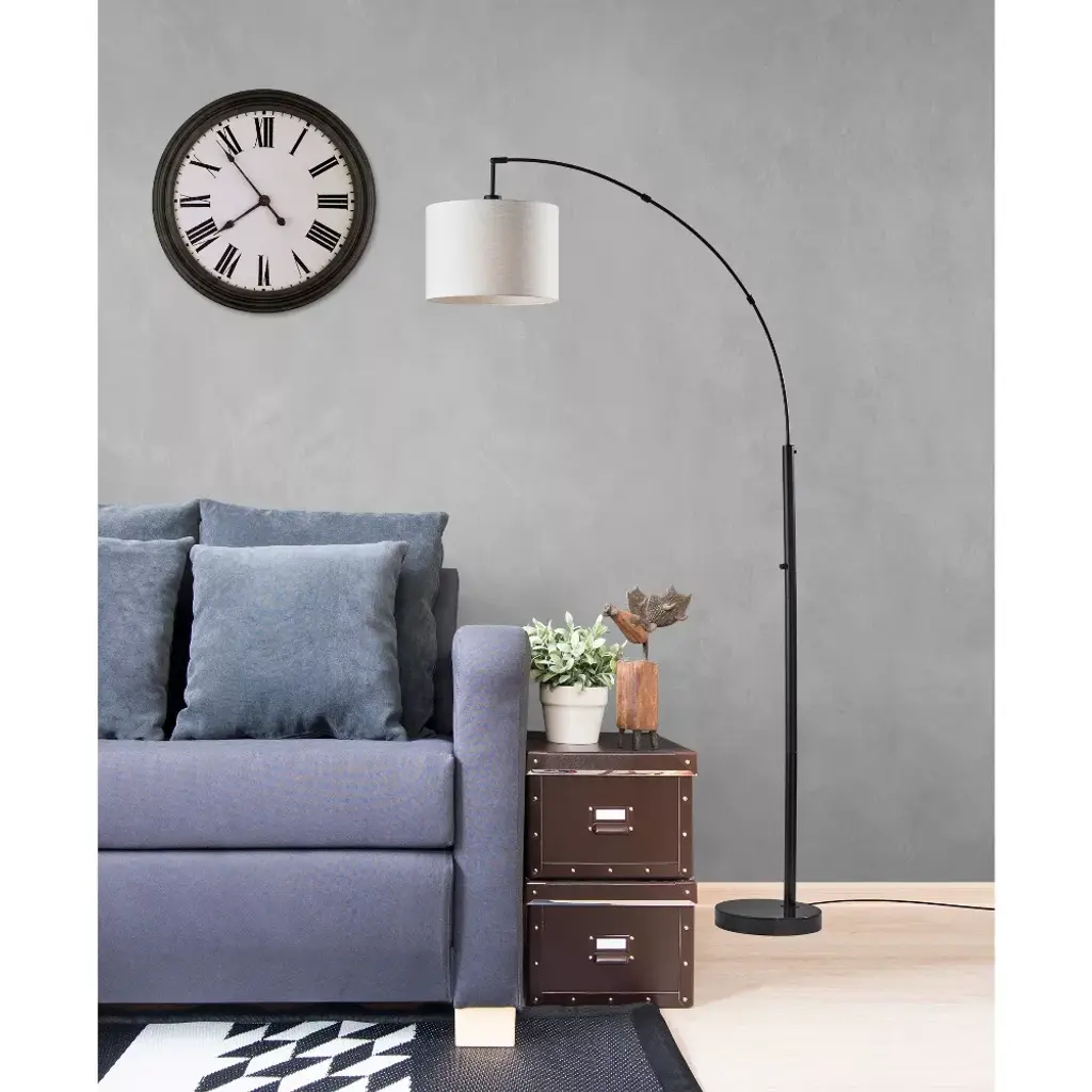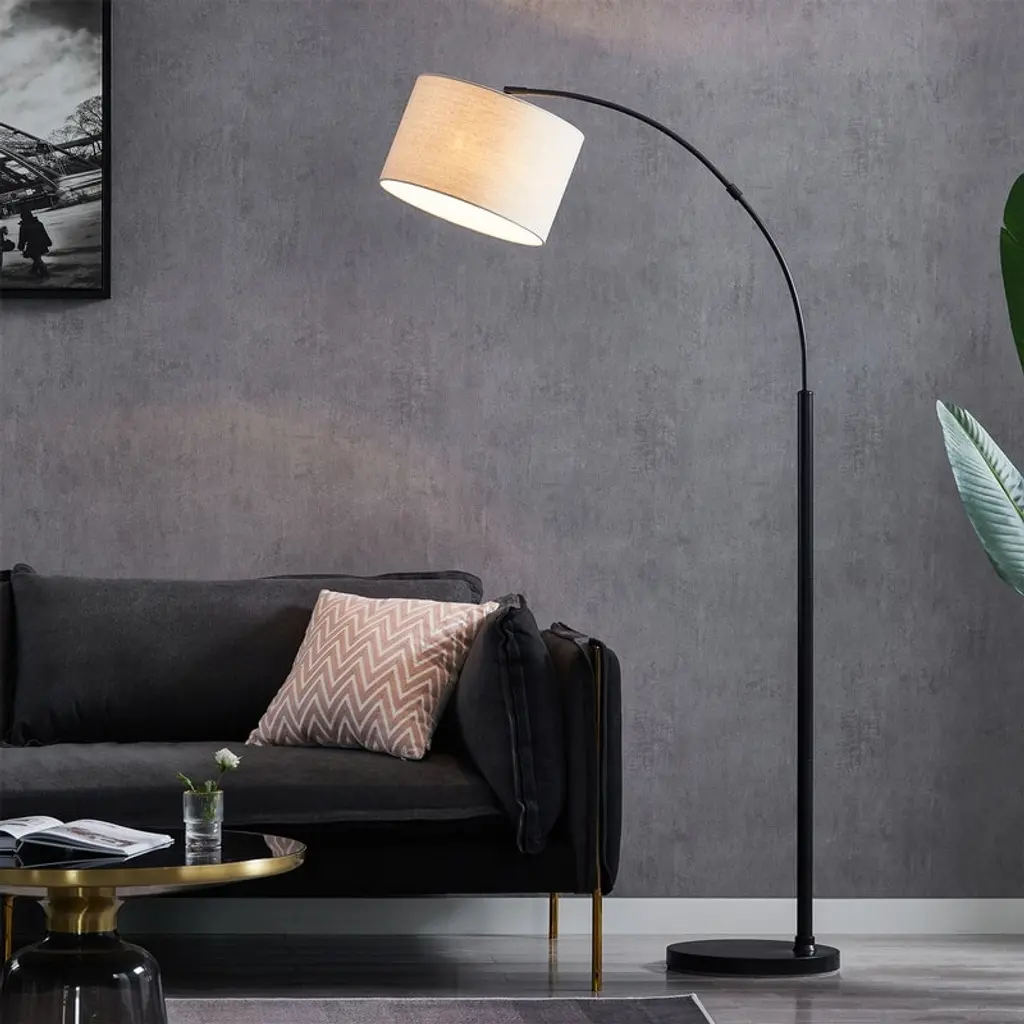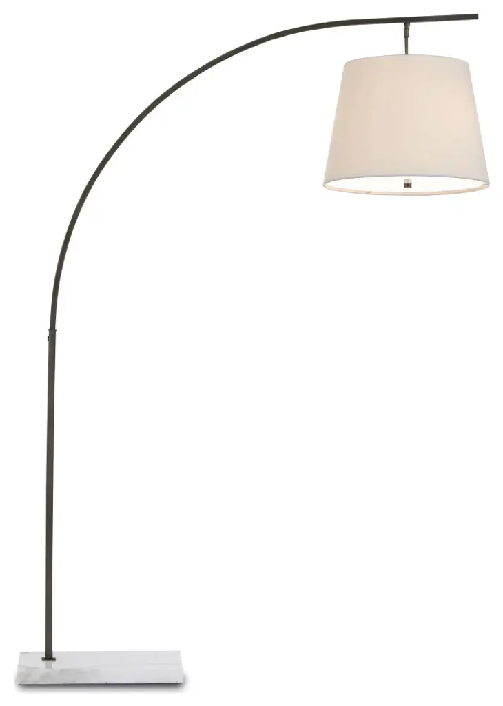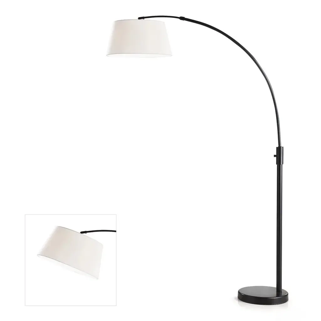 A smart and stylish way to light up a seating area, the Bowery Arc Lamp provides overhead lighting that can be controlled with an adjustable shade. Aside from functional assets, a matte black finish is paired with a black marble base to display striking style. An 100 Watt bulb shines beautifully through a taupe textured fabric shade. This unique mix of materials creates a beautiful, classy look adding modern farmhouse vibes to any home. An on/off rotary switch is placed conveniently on the pole.