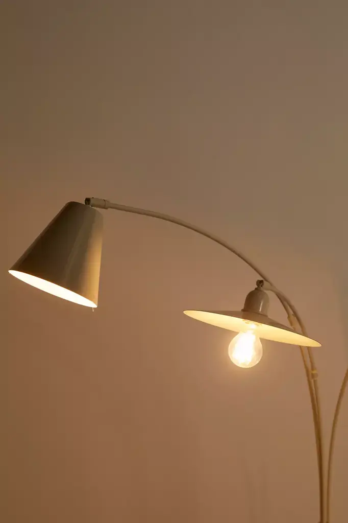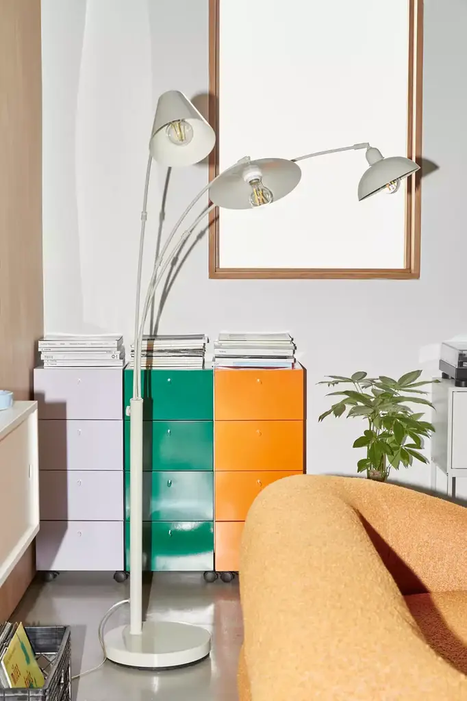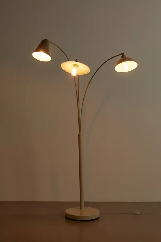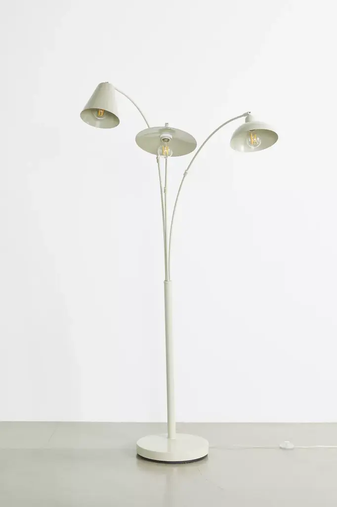 Upgrade your lighting display with this floor lamp featuring a trio of arms topped with mismatched shaped shades for a playful look we love. Plugs in to power on. Available exclusively at Urban Outfitters.