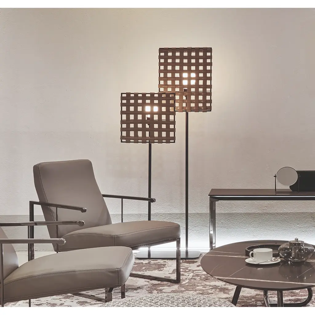 Indulge in the luxurious Dema Royal Braided Leather Floor Lamp. Crafted with a sleek painted metal frame and finished with a matte black touch, this lamp exudes sophistication. The braided leather lampshade adds not only a touch of elegance, but also allows for dimmable lighting with the included 7W globe bulb. Elevate your space with this exquisite floor lamp.