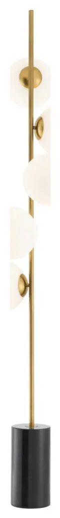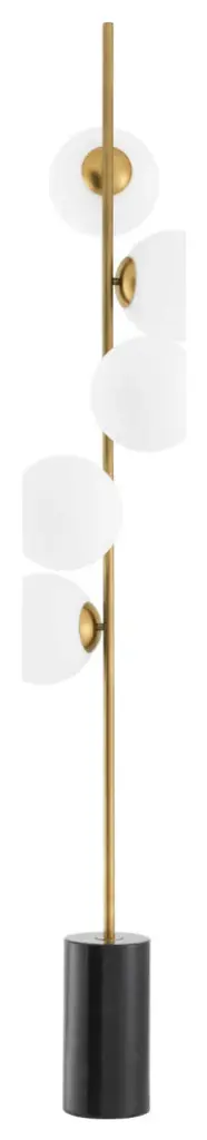 Update your living space with the unique style of the Tempo Floor Lamp. This contemporary floor lamp will give a truly modern look to your lounge or bedroom. It features 5 clear glass spherical lampshades and a metal fixture with a nickel finish and black marble cylindrical base for a striking contrast.W6 x D17 x H75 in | Weight 37lbsMaterial | Iron, Marble, GlassFinish | Antique BrassE12 - Max. 40W - 110 Volt